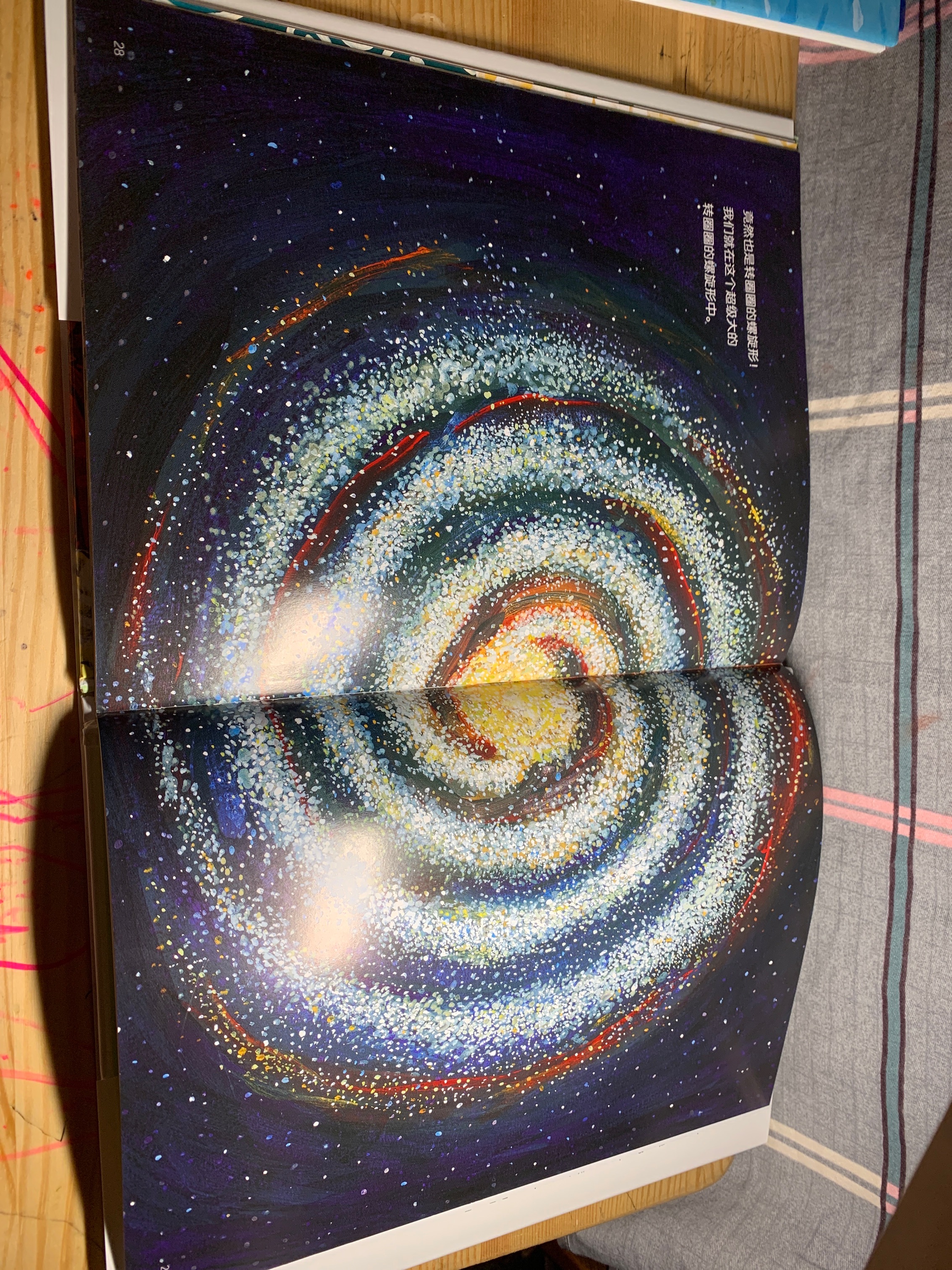 而且对于银河系这张图画印象深刻。看过很多很多银河系的图,但这个还是美到我了,我觉得是最美的螺旋了。