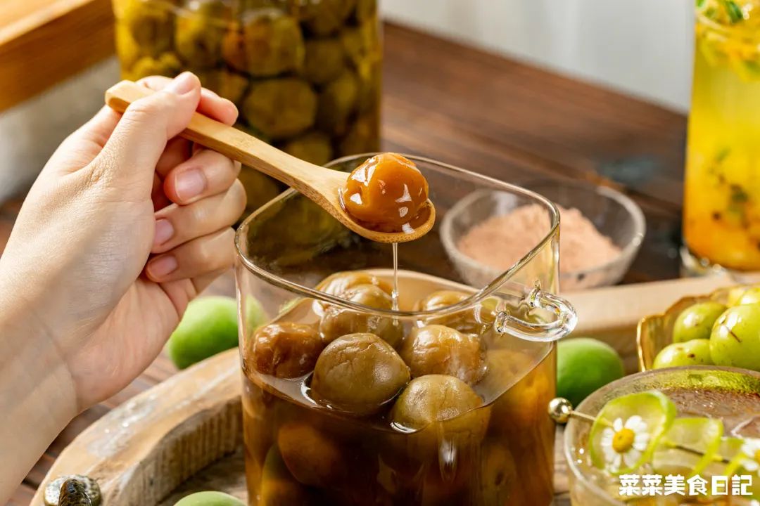 腌出来的梅子汁也浪费不得,淋到西瓜、杨桃、梨、番茄等水果上,夏天吃无敌酸爽;
