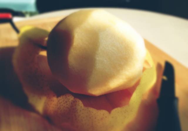 1、先将梨削去皮;