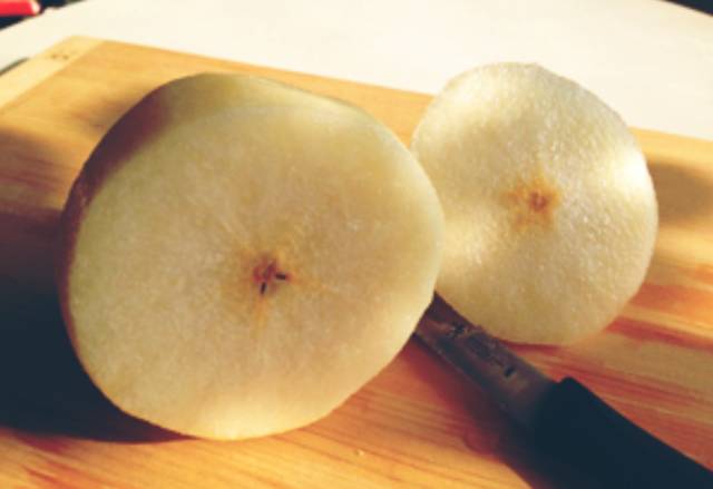 3、将雪梨核去掉备用;