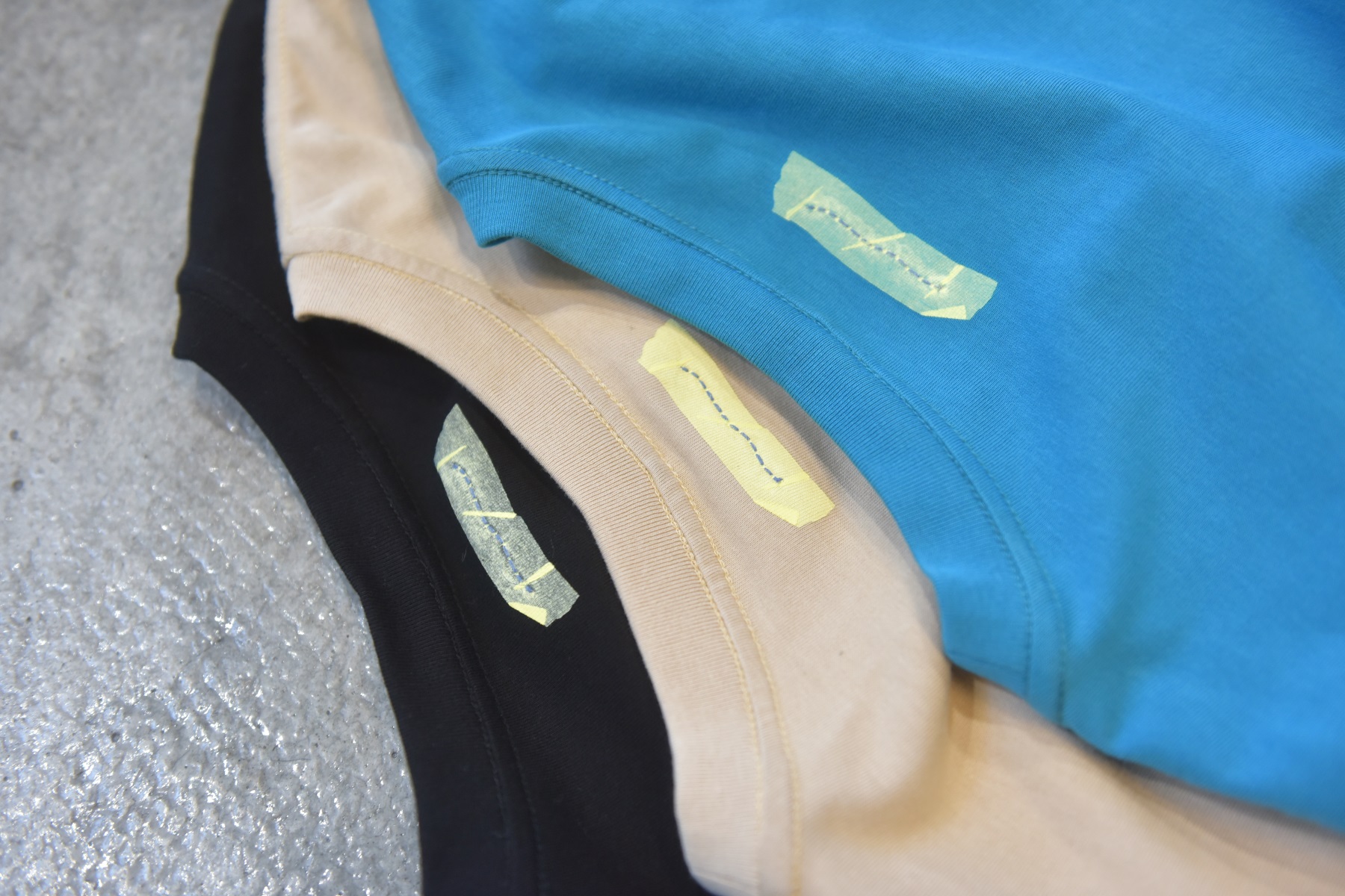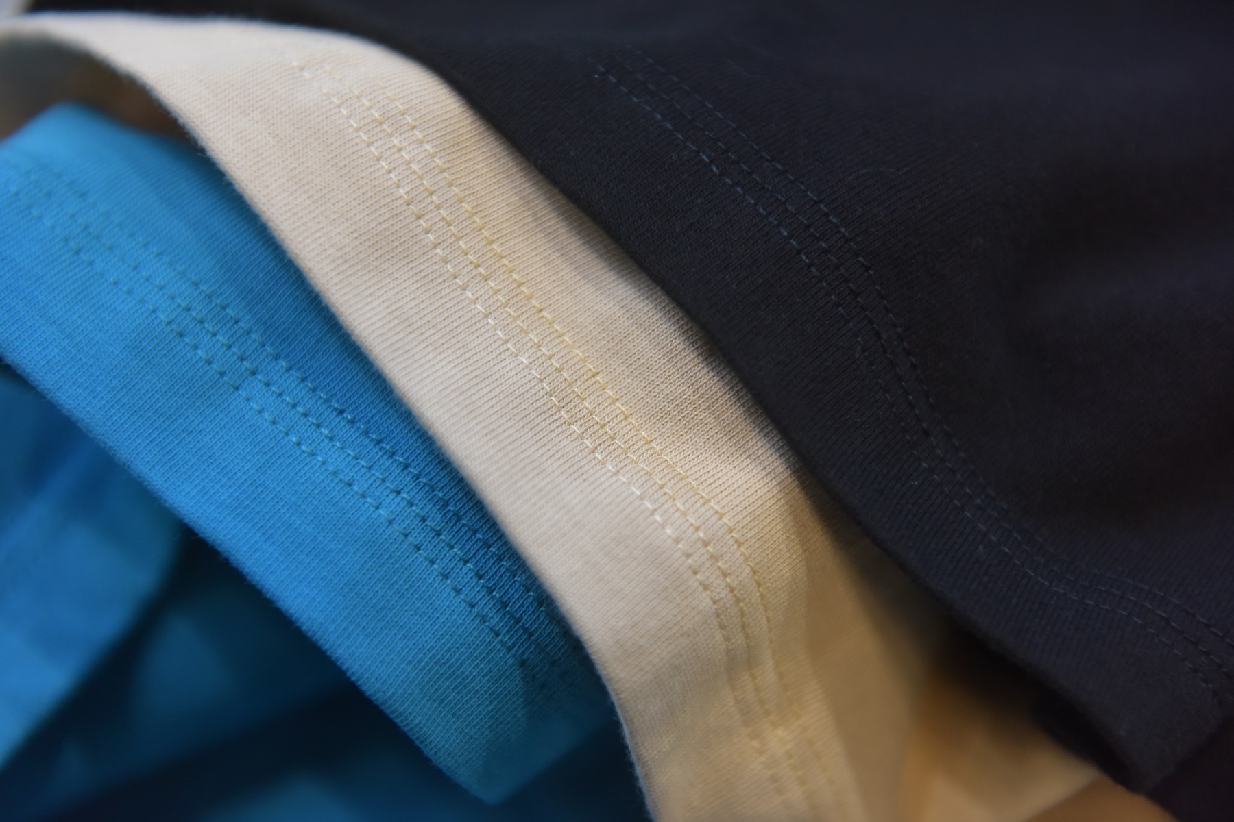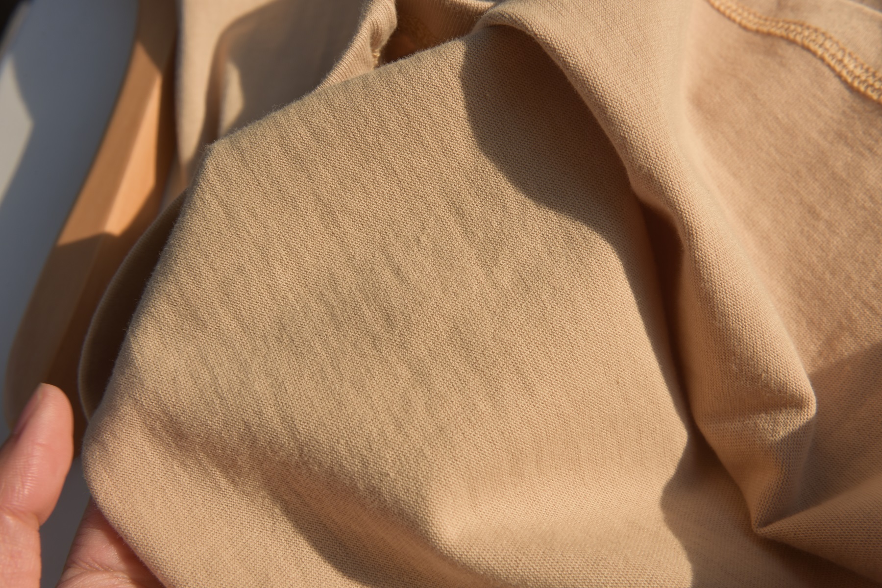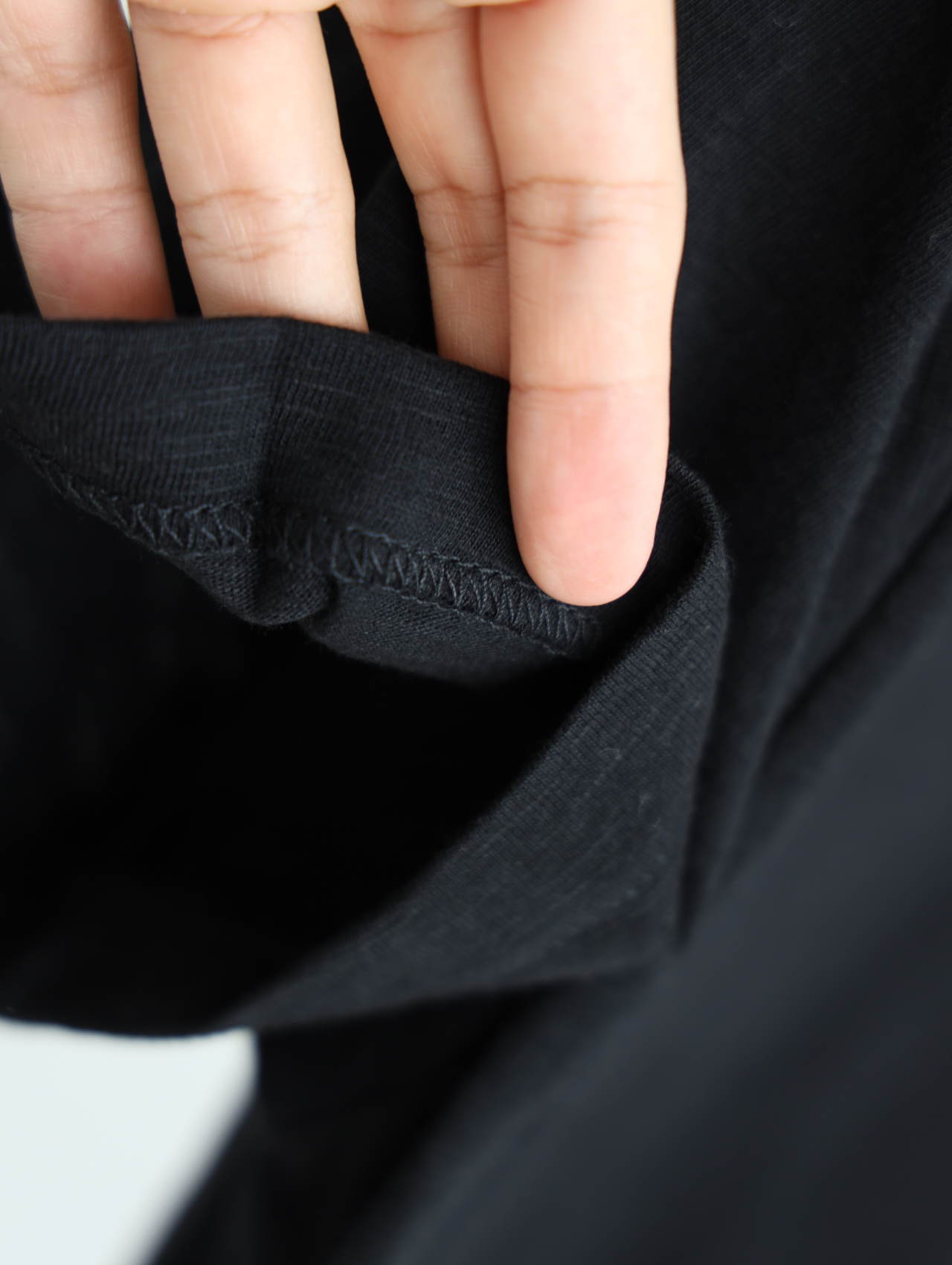 领口做了独立的价款的横基螺纹的包裹 同样是竹节纱面料 带一定的弹力