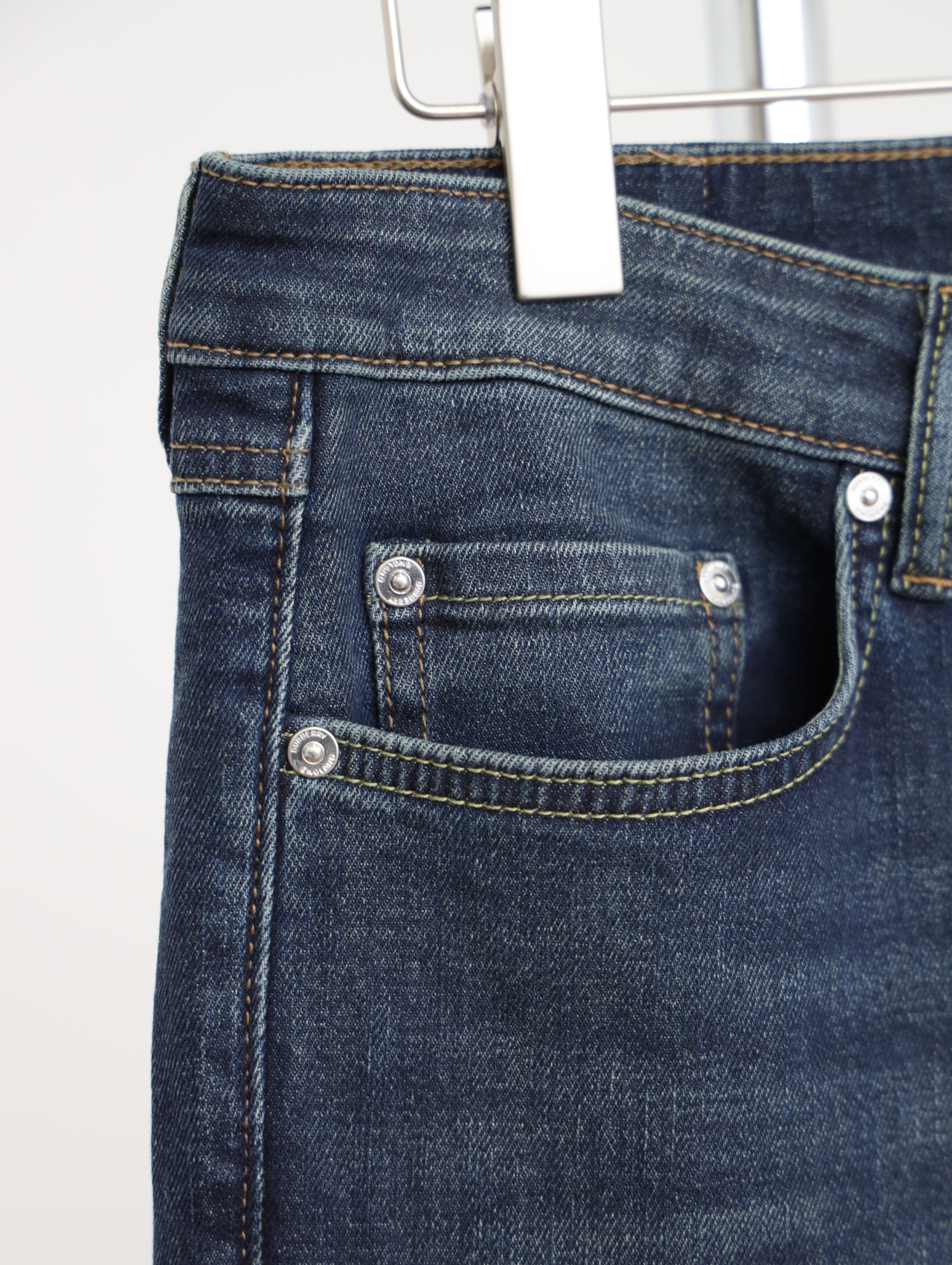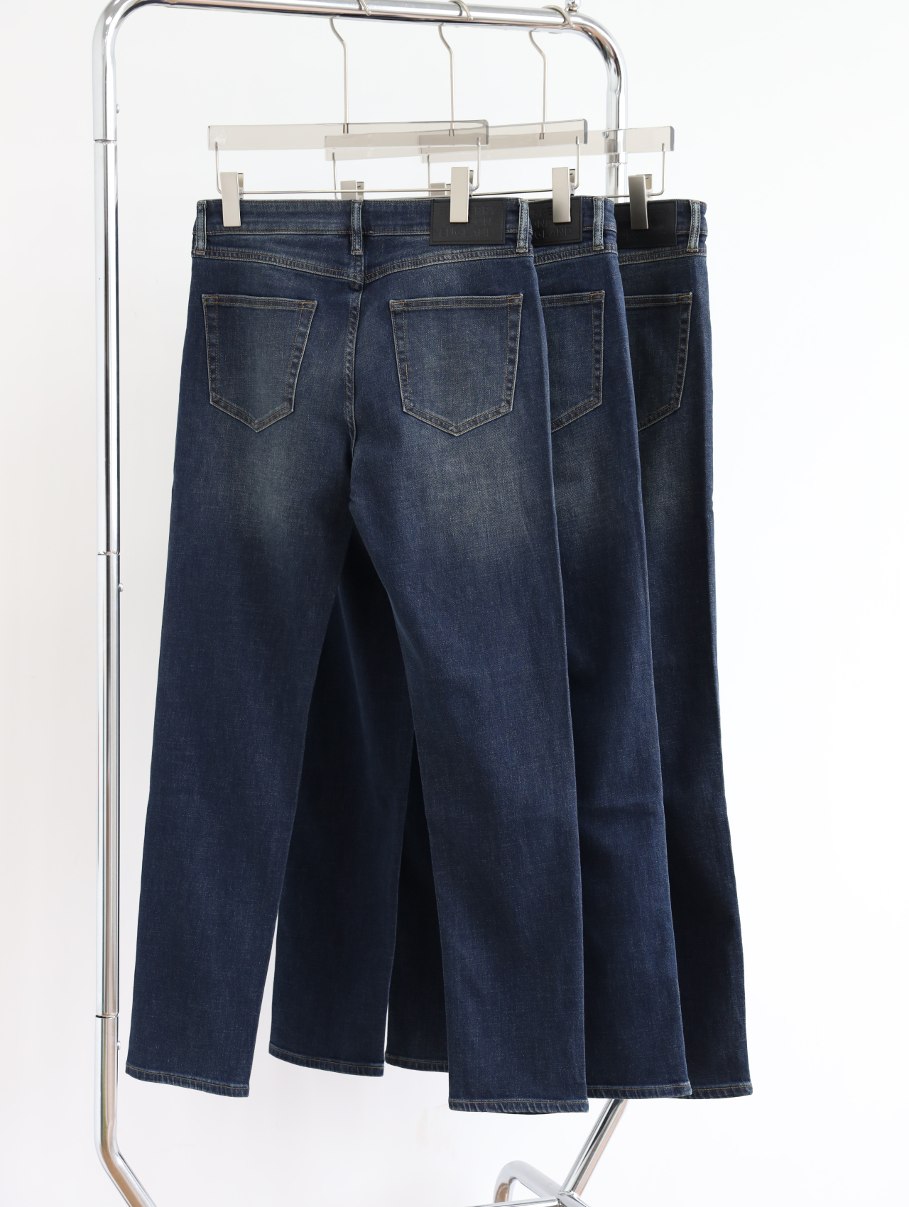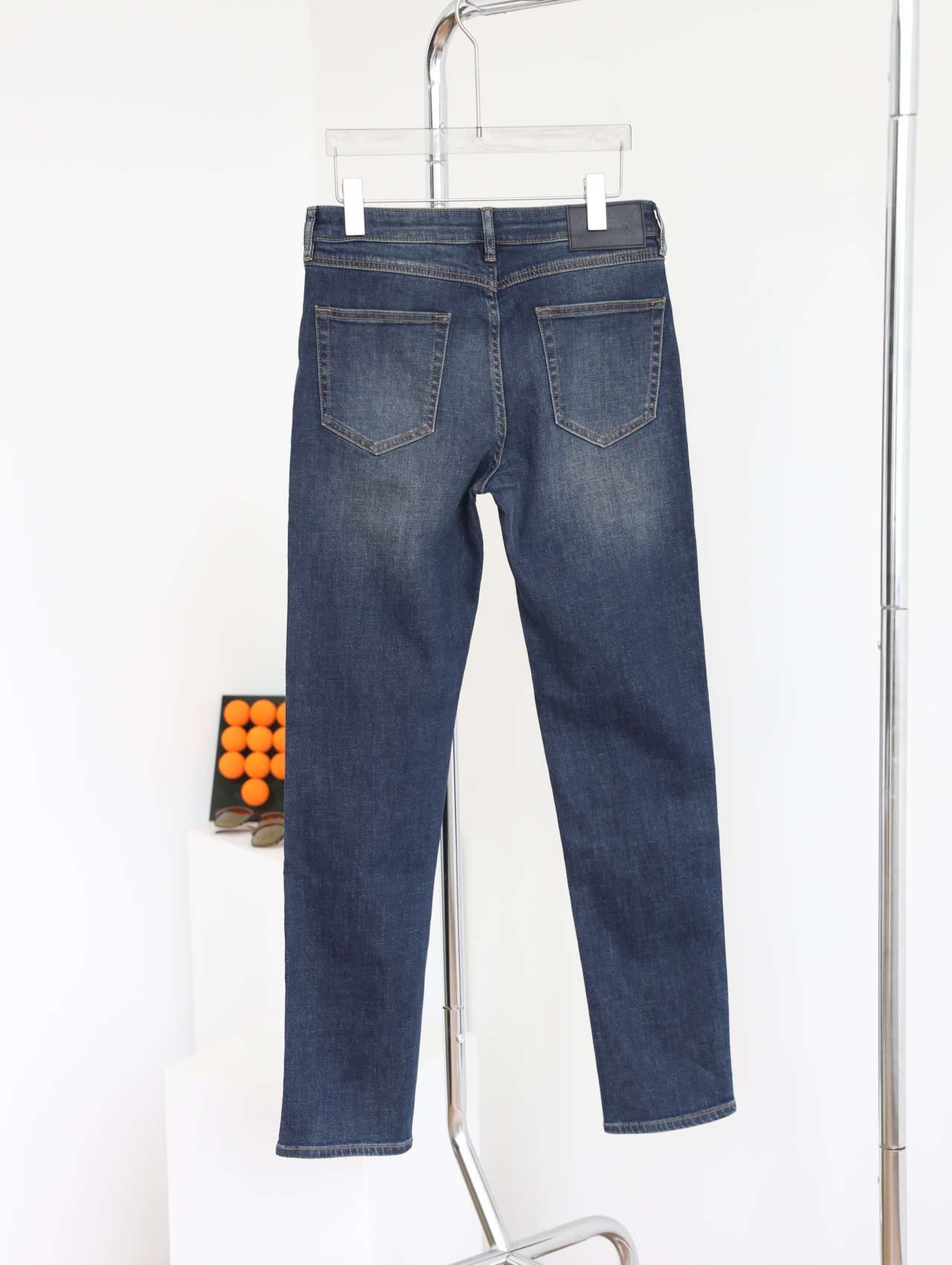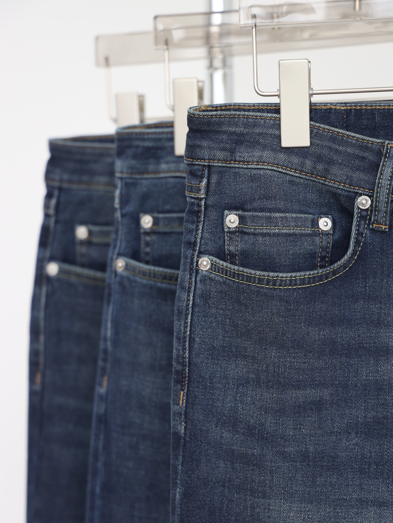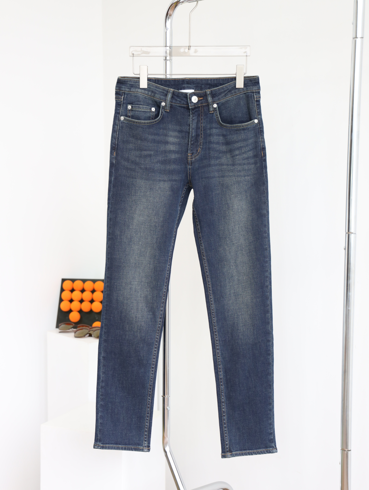 粗斜纹布,深靛色的棉质,小直筒牛仔裤