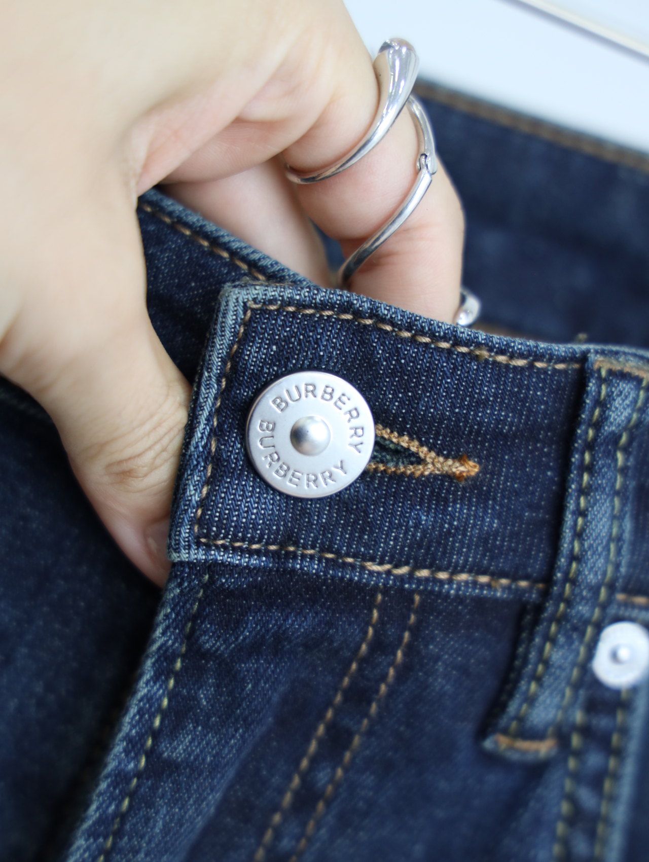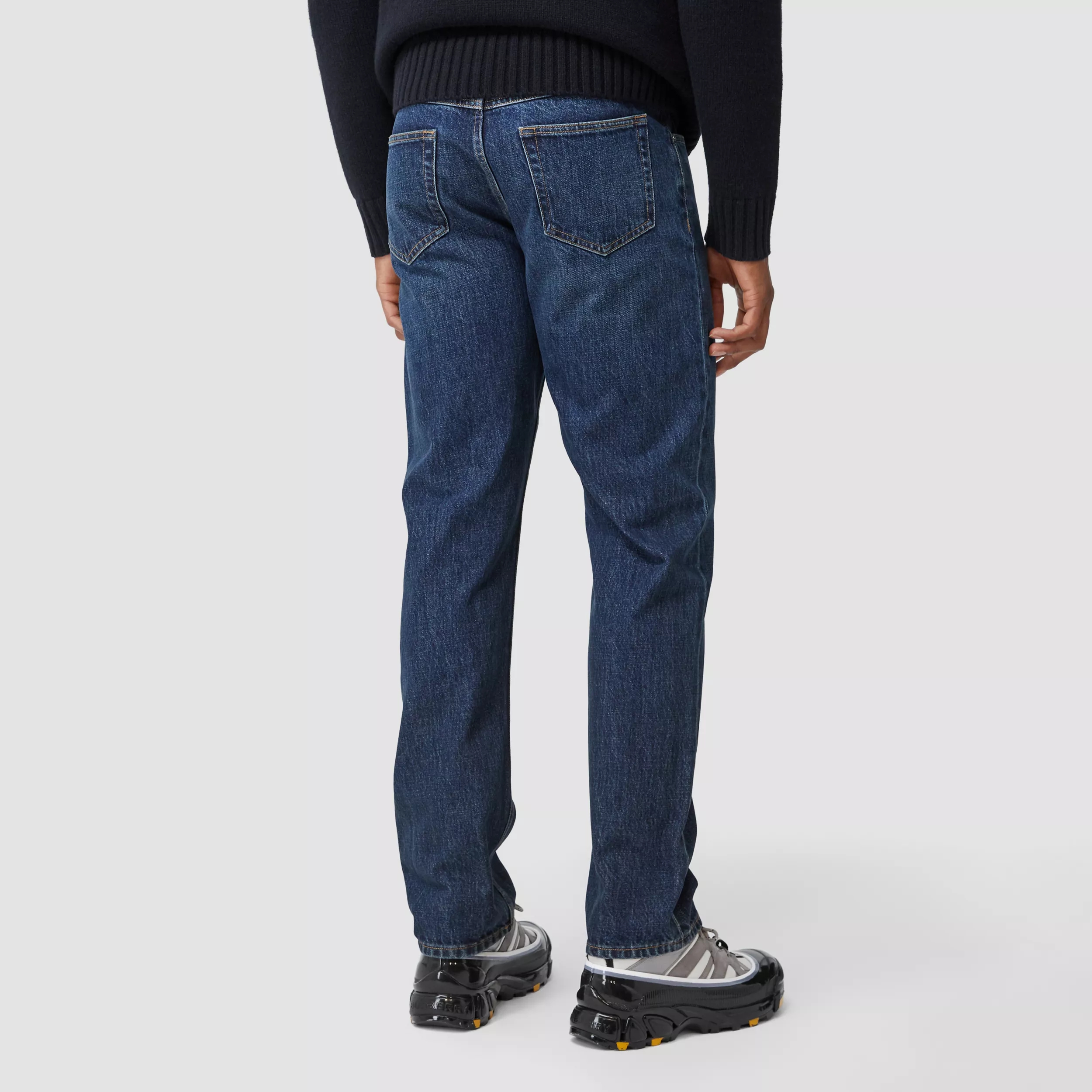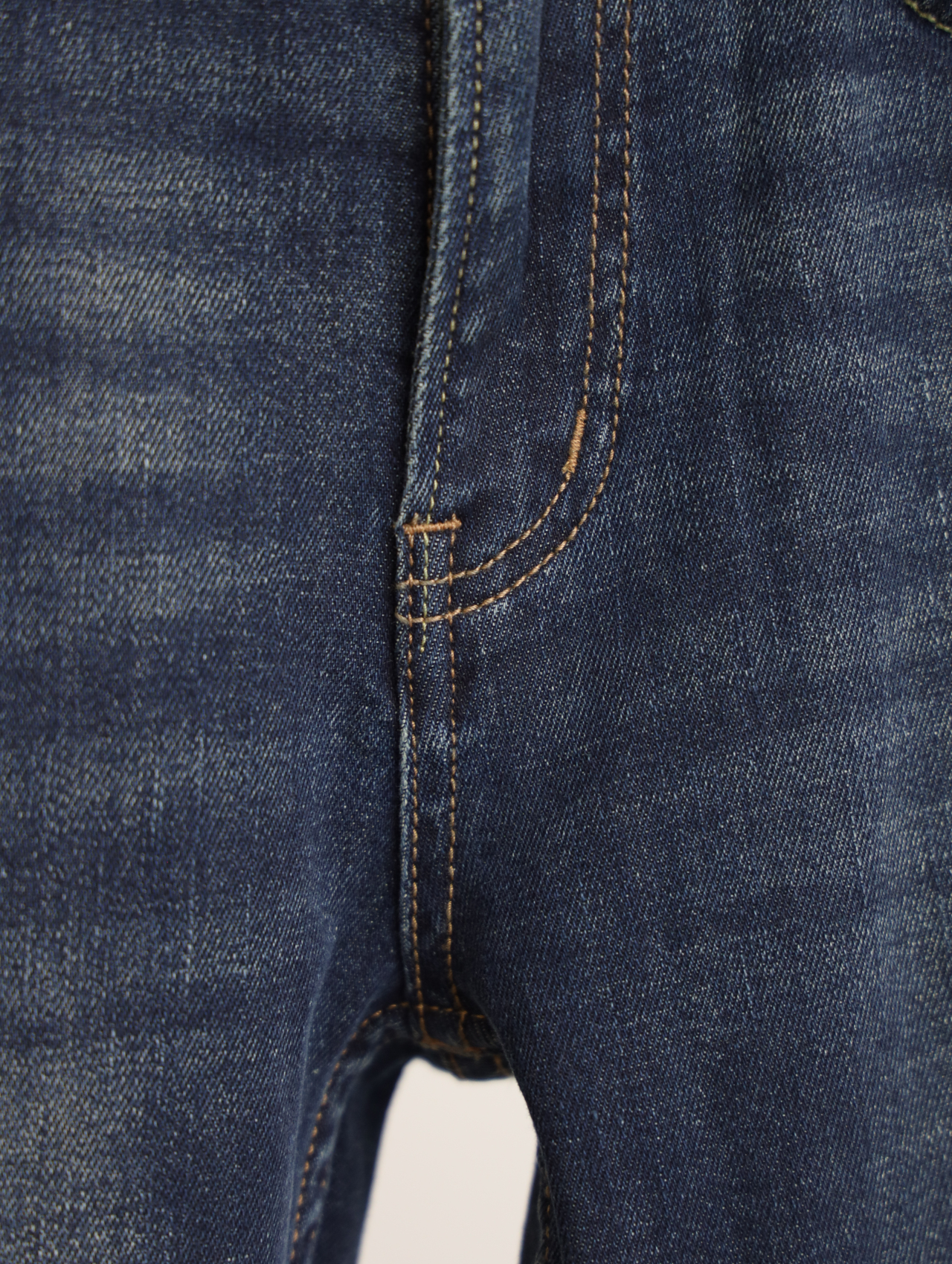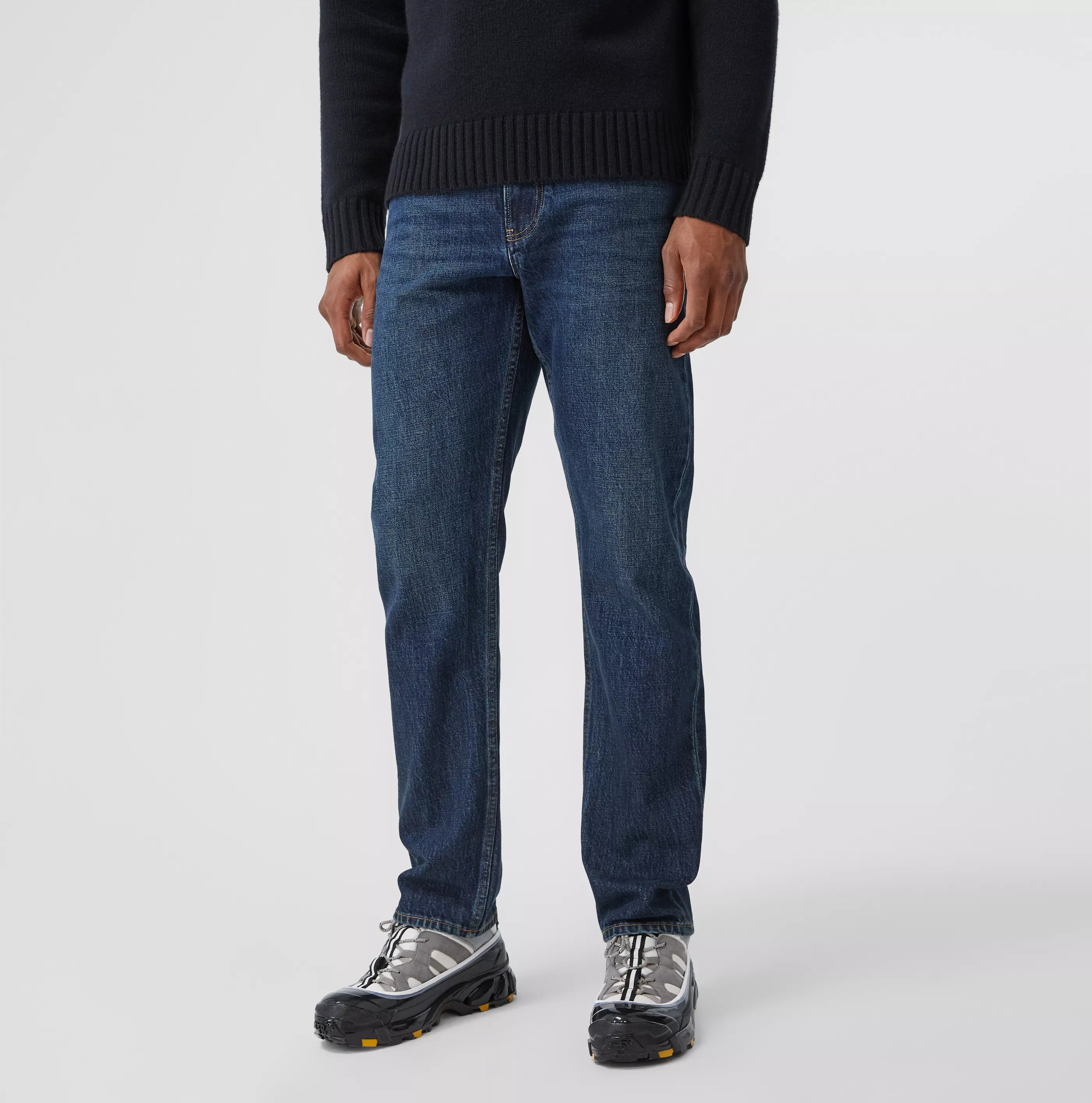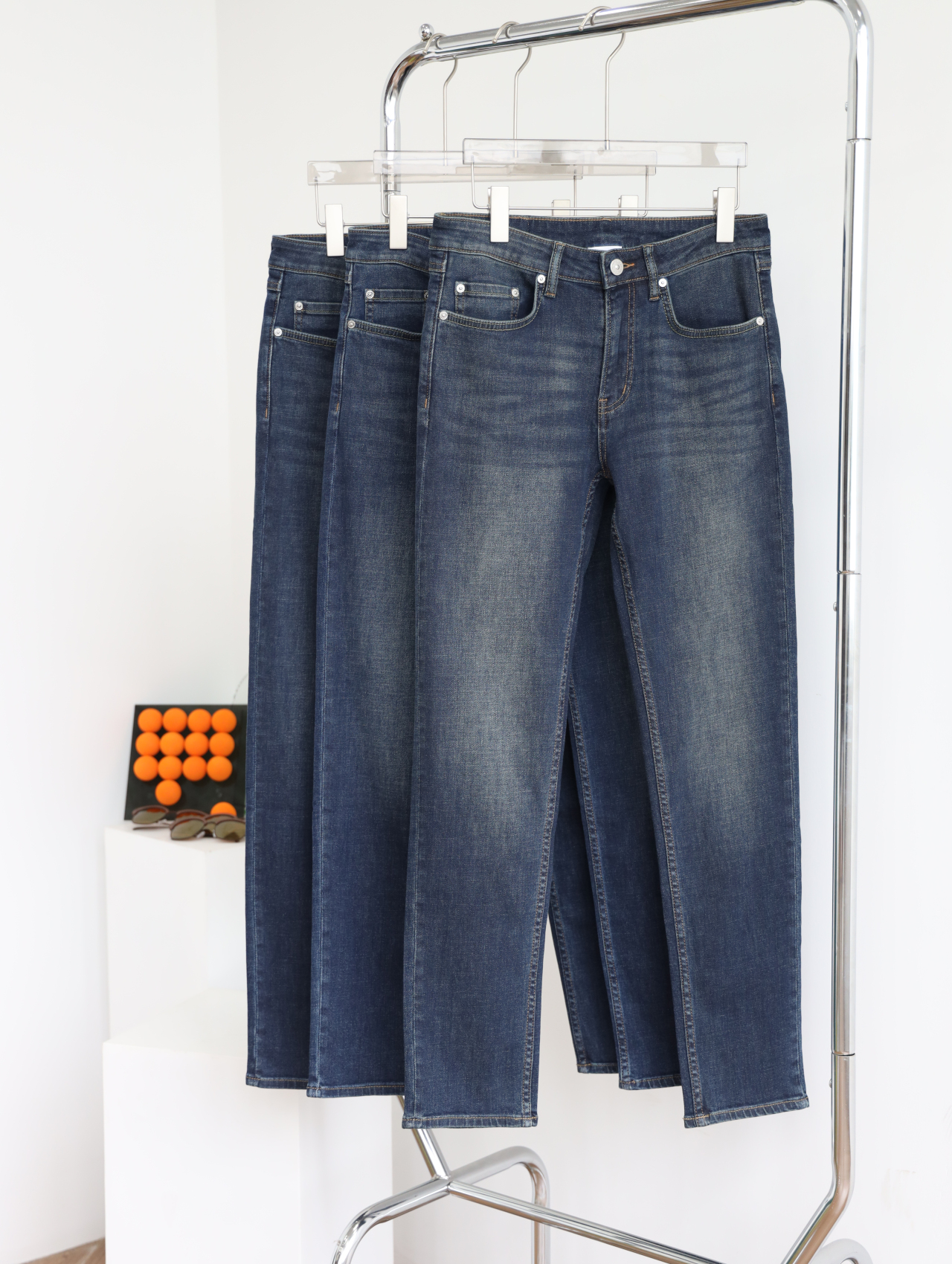 粗斜纹布,深靛色的棉质,小直筒牛仔裤