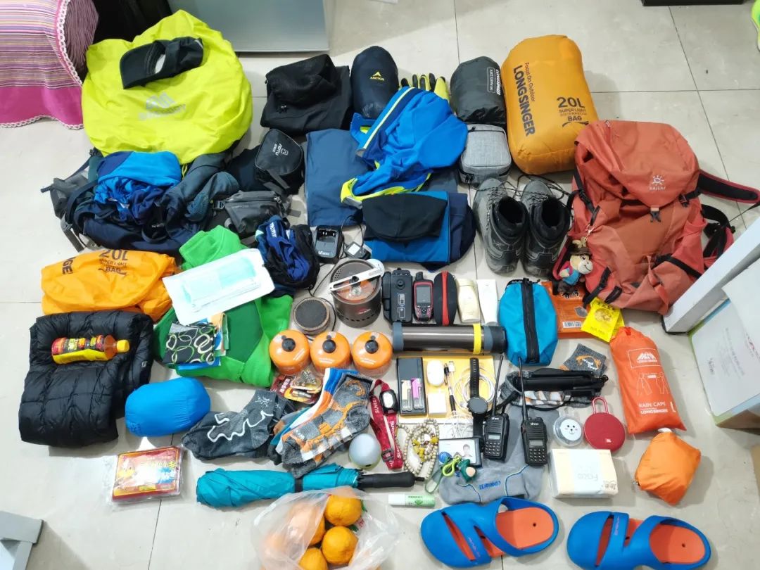 最后我临近出发也没有找到合适的向导,就临时决定先到了村上再慢慢找向导。然后是出发前的个人装备得备好,一样不能落,驴友的“出行物资照”必须来一张。