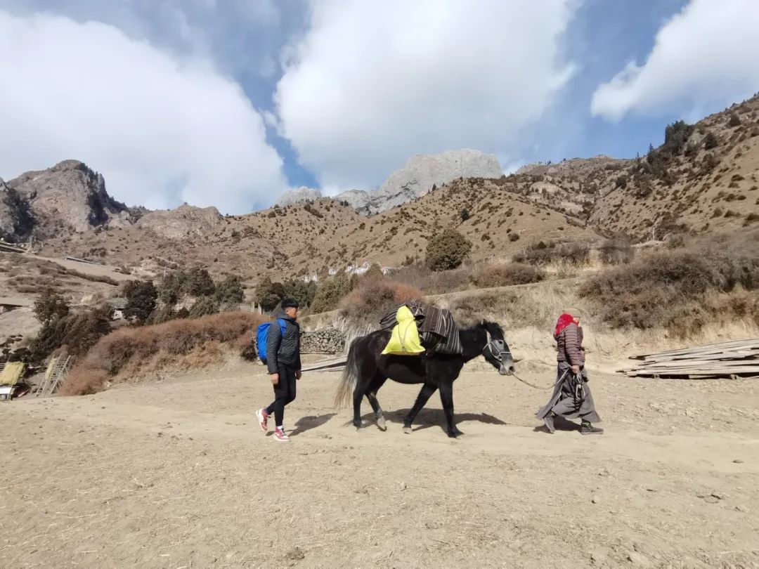 最终破罐子破摔,在跟小哥商量后,我们决定让阿姨牵着马儿驮着我们的物资原路返回村上,我和他轻装上阵,继续快速走完后面的 40 公里行程,这 40 公里必须在今天一天走完,走不完也得走,没有回头路,当下我们就收拾行李准备出发。