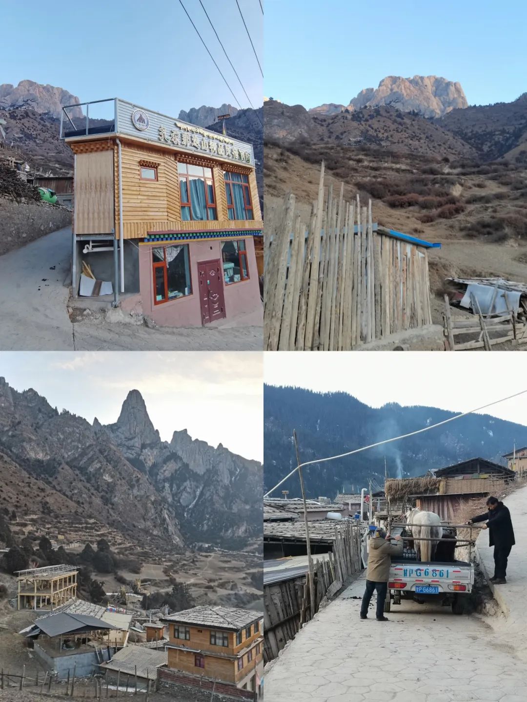 最终在不懈地努力下,联系到一个向导,从交谈当中得知他对这片区域特别熟,年轻时候是一个靠谱的向导,他的名字叫做贡布九,他说可以进山,原以为是他带我们进山,最后却是他安排他老婆和侄儿带我进山,我忘了他侄儿叫什么名字了(我记性不好,下文中称之为“小哥),只记得 20 来岁,在外面念大学,寒假回来帮家里看着小卖部,这不遇上我们进山嘛,也就帮帮家里人的忙。