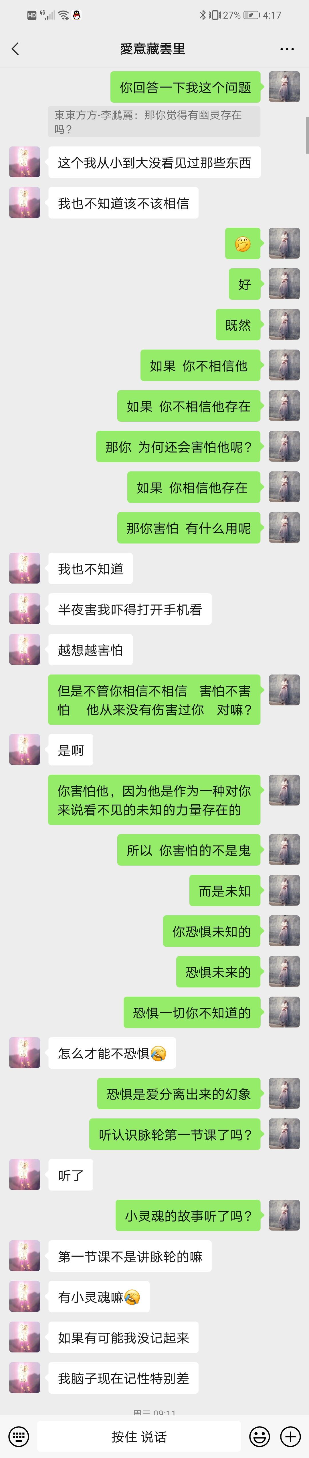 举个例子就像前几天有个师弟在上课时,听到有关看不见的力量,高维的部分,对鬼魂产生了深深的恐惧,大老爷们甚至晚上不敢睡觉。