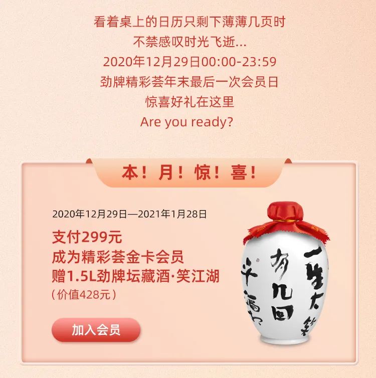 劲牌精彩荟·29爱酒会员日|年终超值福利,等你来!