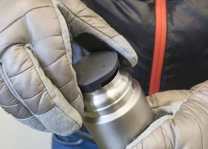 使用起来很方便;可以在不脱去手套的情况下松紧,杯盖还可以当杯子使用。