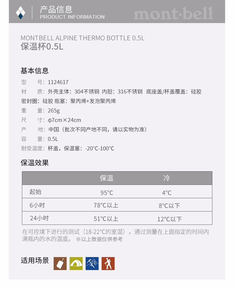 Mont· Bell 的这款 ALPINE THERMO 保温杯保温性能也十分优异。
