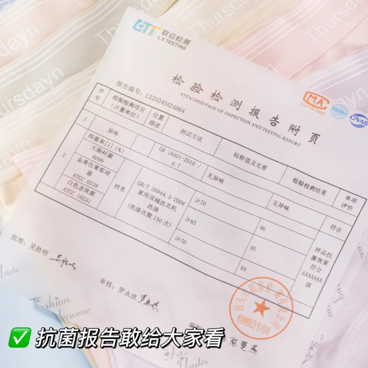 特别的是咱们这款内裤还是全身7A抗菌!抗菌报告直接给你放进包装!!