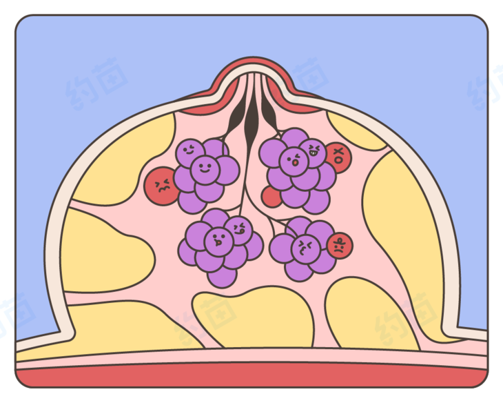 当乳房内细胞受到复杂因素影响,有了不一般地生长、变大趋势,就会慢慢长出来结节。