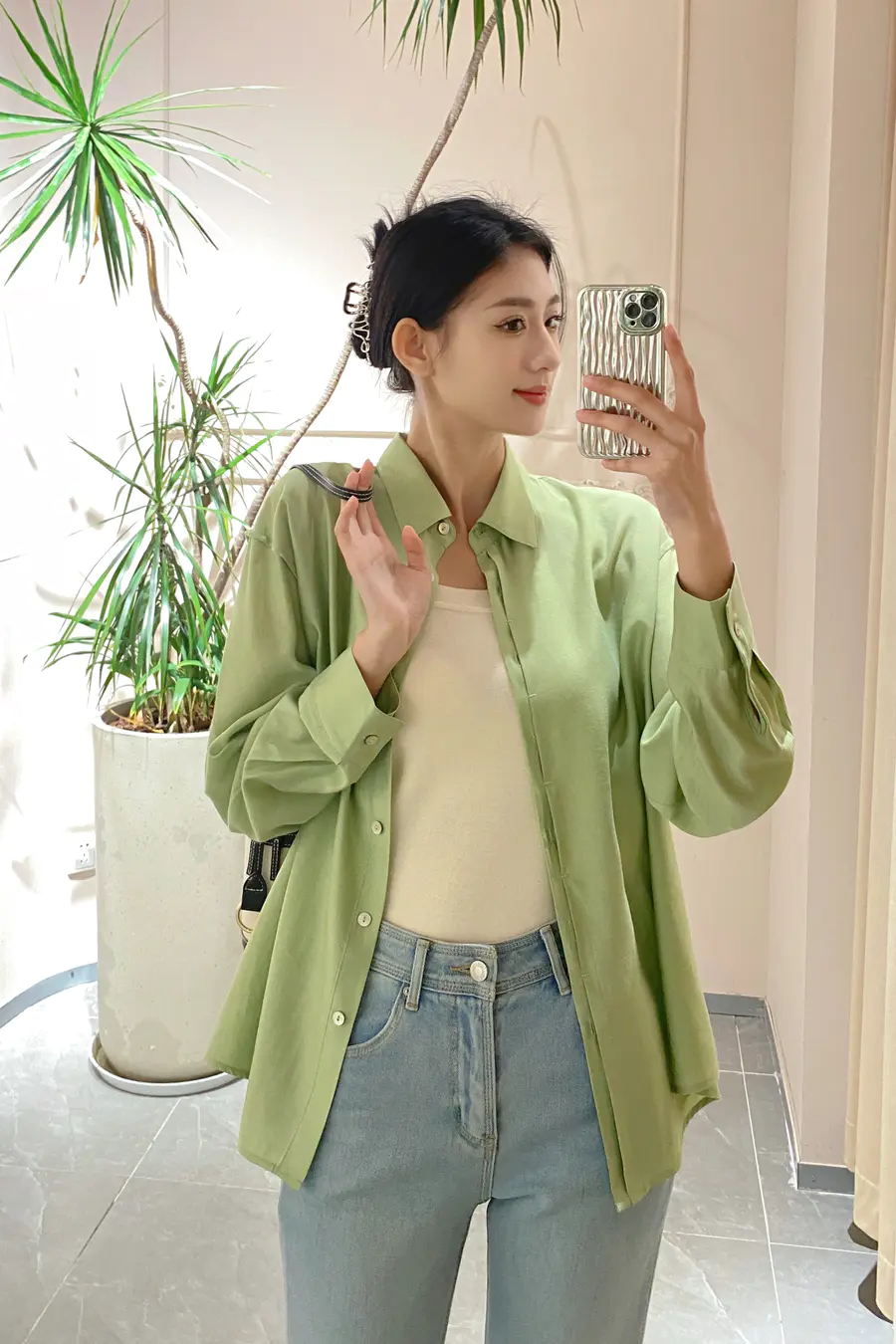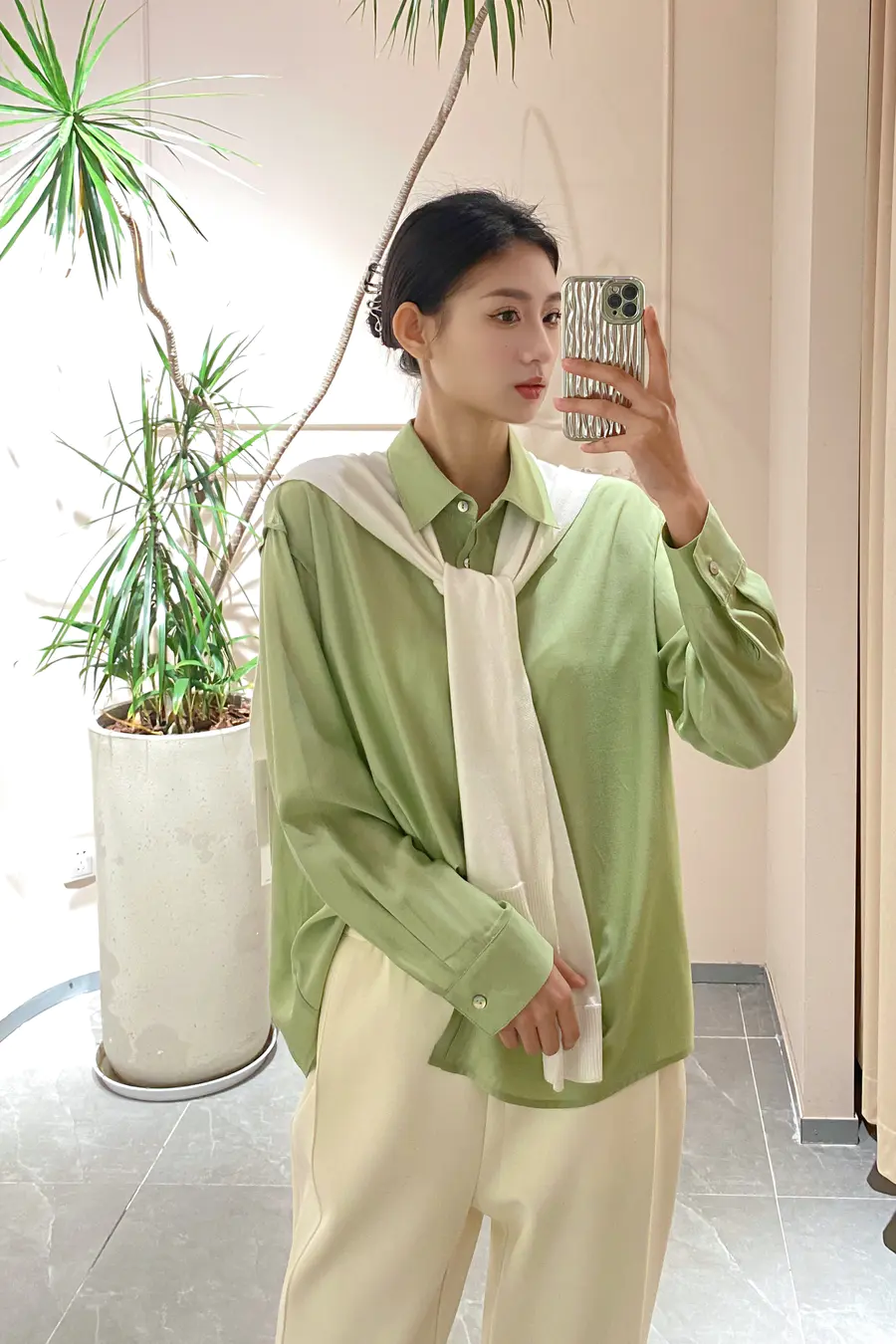 青木瓜色真的好吸睛!一整个爱住# 叠穿必备万能衬衫#