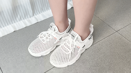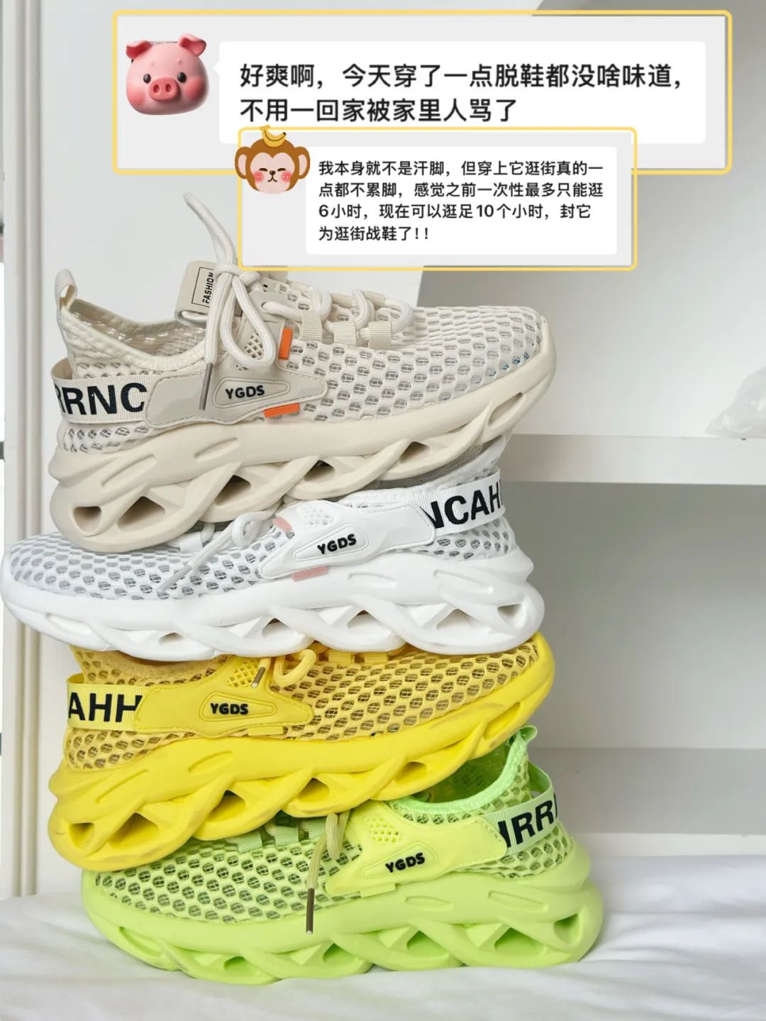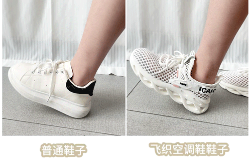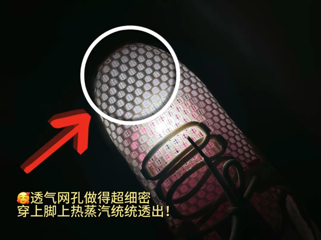 鞋面透气孔数量是普通网布的多倍,透气性强,就好像给你的脚底装了个“行走的小空调”