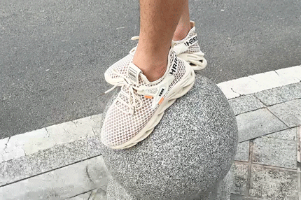 在圆石球上走过,飞织空调鞋都稳稳不打滑,止滑性我给一百分!
