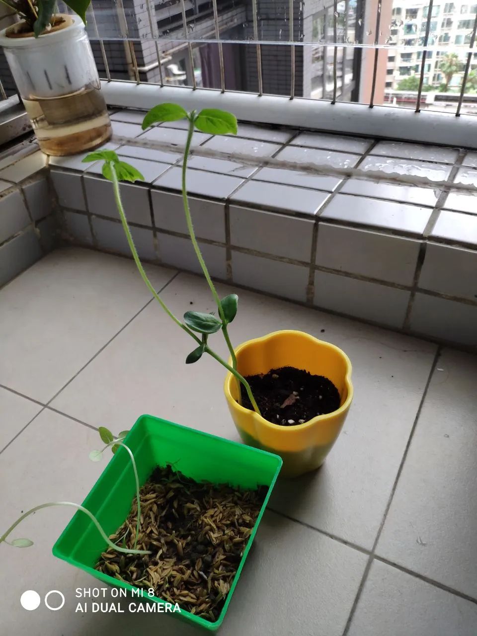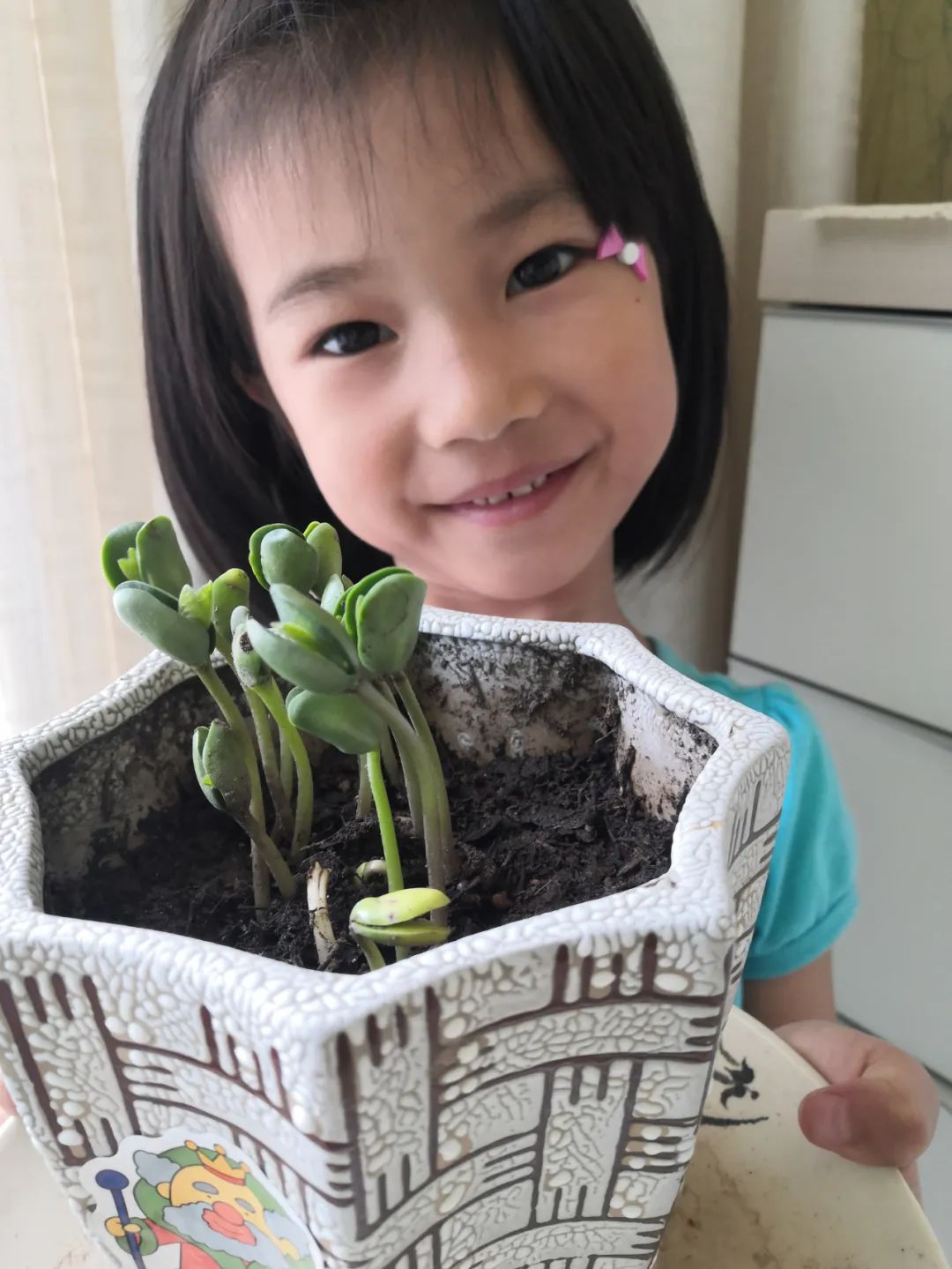△ 孩子们种出来的芝麻苗和黄豆苗