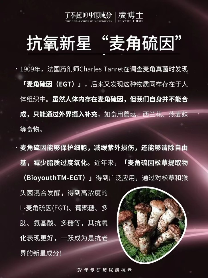 今天来给大家科普下抗老界的新星「麦角硫因」