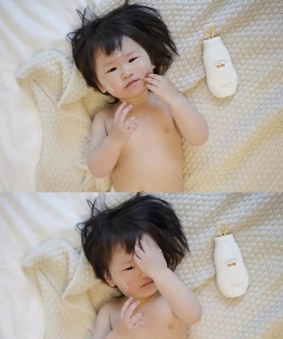 每次宝宝洗澡完我都冲过去给她抹身体乳,哈哈哈哈太嫩滑了~我自己也会默默抹完腿部睡觉,小干纹醒来就会没有啦!以后直接用她的身体乳就好啦,哈哈~