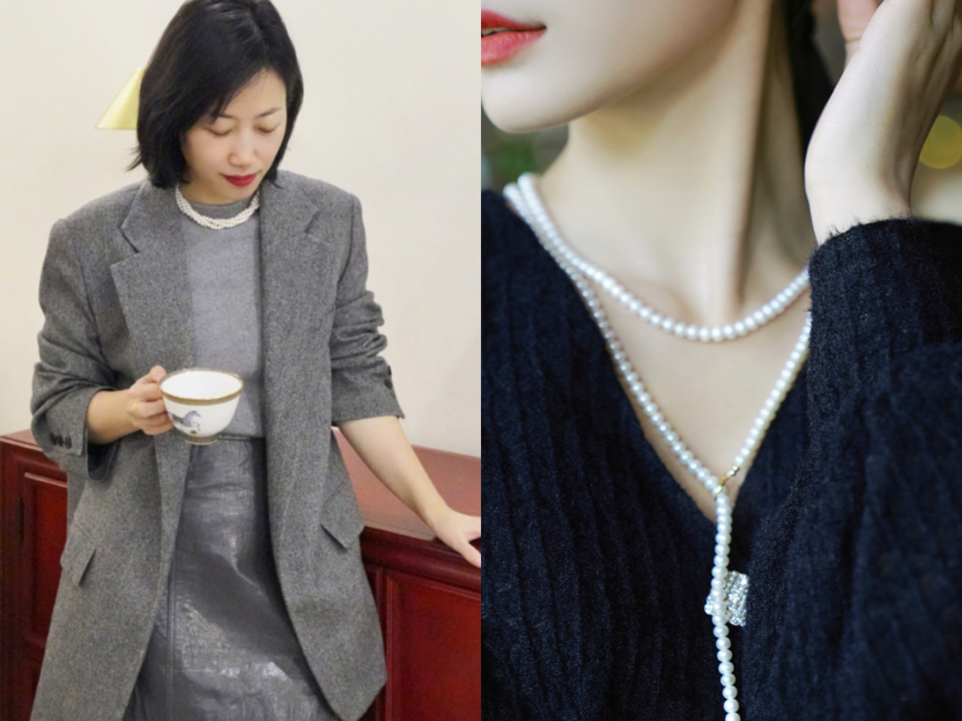 比起金属项链,珍珠项链更温婉大气,既能在重要场合撑场面,也适合舒适的日常穿搭。