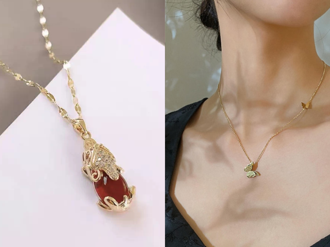 买手表还会送两条绝美项链:转运招财貔貅项链+双蝴蝶项链。