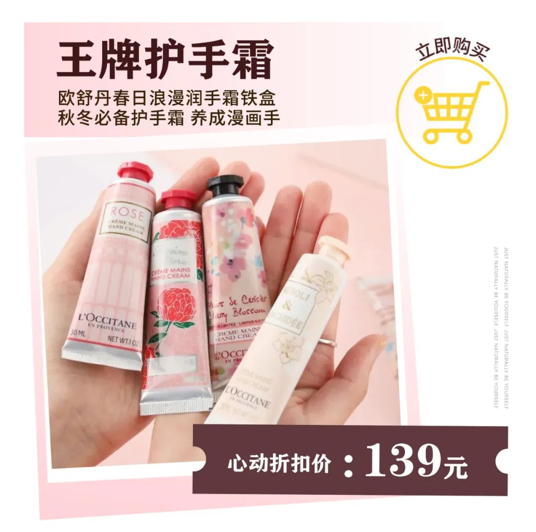 欧舒丹护手霜5件套,到手仅需139元,平均一支仅需27.8元,还送限定款收纳筒1个。