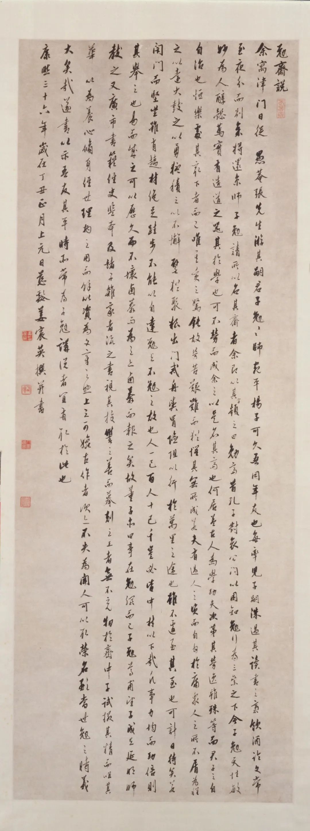 世传斋号章始于唐相李泌端居室玉印。宋、元以后,此风渐盛,书家几乎人人有斋号章。明书法家文征明云:“我之书屋多起造于印上。”斋号通常称斋、堂、室、楼、阁、馆、轩、庵等,如惟清斋、雪溪堂、磨剑室、笑隐楼、松风阁、来禽馆、赏雨轩、乐天庵等。