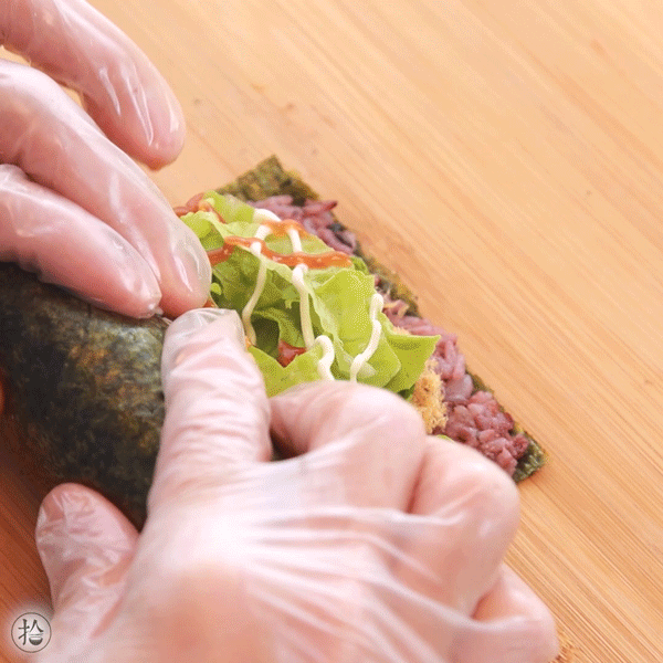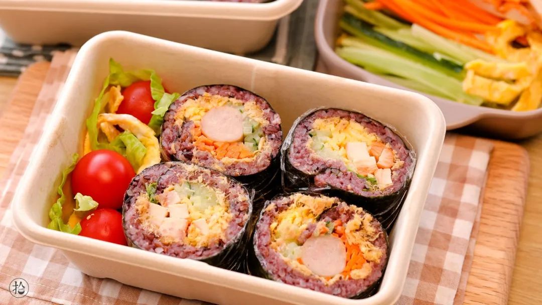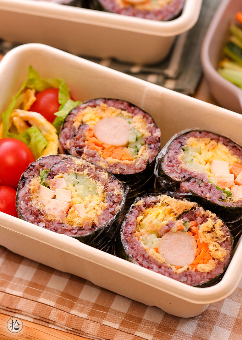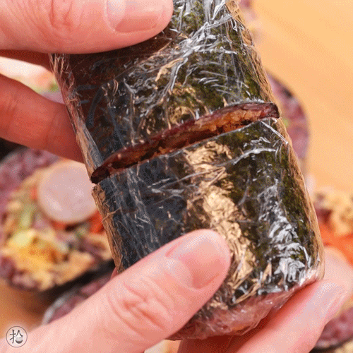 ,清香的海苔包裹着香糯的紫米,搭配美味的馅料,口感层次丰富,