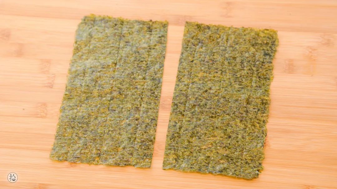 1.寿司海苔对半剪开。