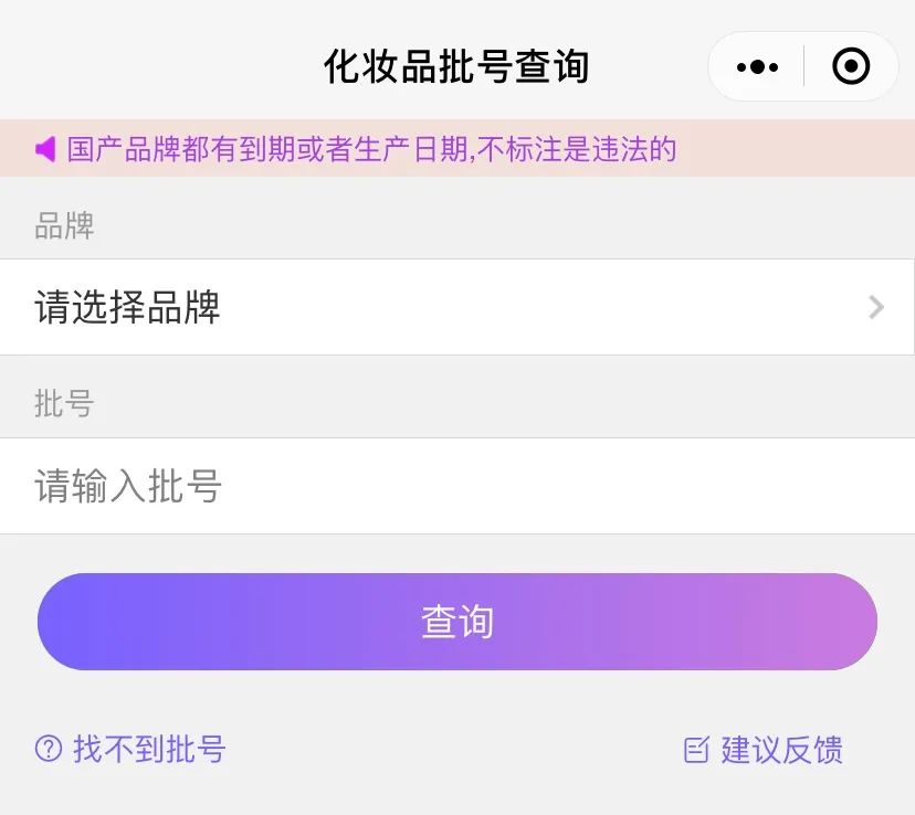 ☉ 如果懒得安装app,直接在微信搜索🔍 “化妆品批号查询”的小程序,先选择护肤品牌,然后输入批号,可以查询出生产日期和过期日期。非常方便。