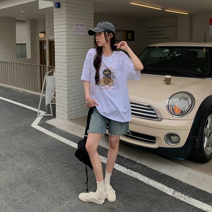 除了单穿,T恤这种万能单品还可以和其他衣服做加法叠穿,增加层次感~