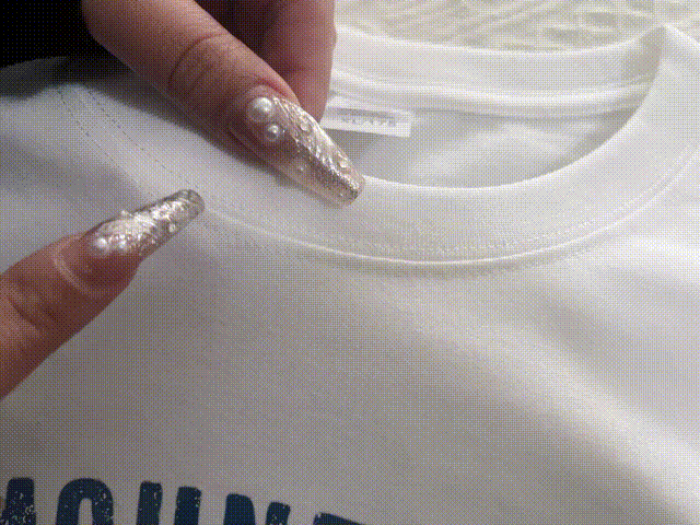 领口采用了双层加厚螺纹和二本针走线,相比包领工艺更具弹力,耐洗耐穿。