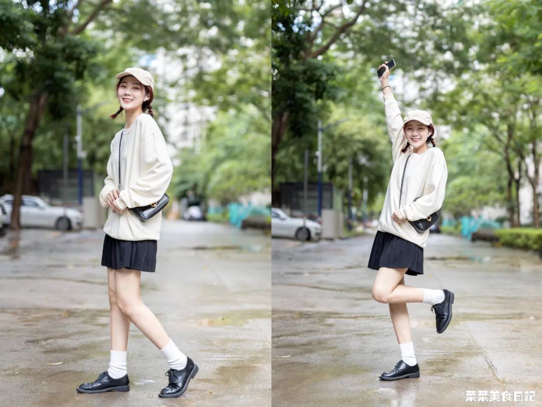 除了短裤,短裙也是卫衣的时髦CP之一,自带甜美的百褶短裙平衡了卫衣的休闲气息,酷中带甜~