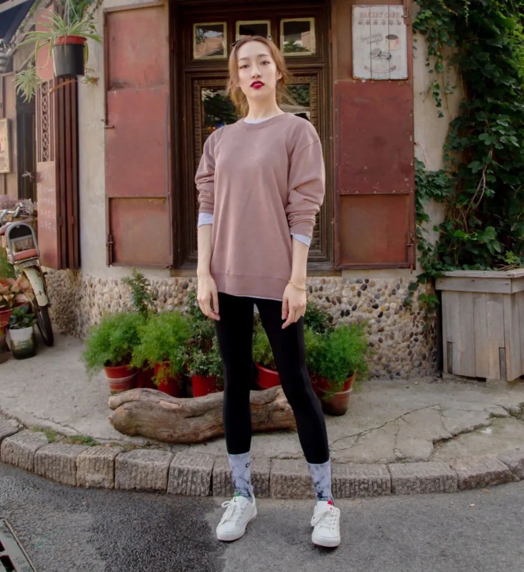 一件oversized的卫衣,造就下半身失踪,就能很好地修饰身材比例,还显得腿特长~