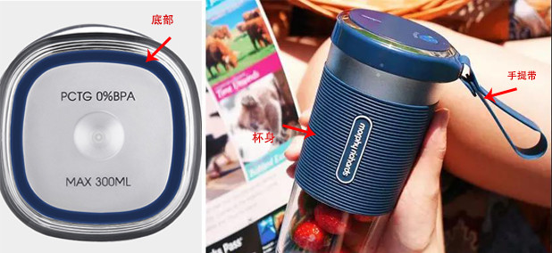杯身外部和底部,还有手提带都是硅胶纹路设计