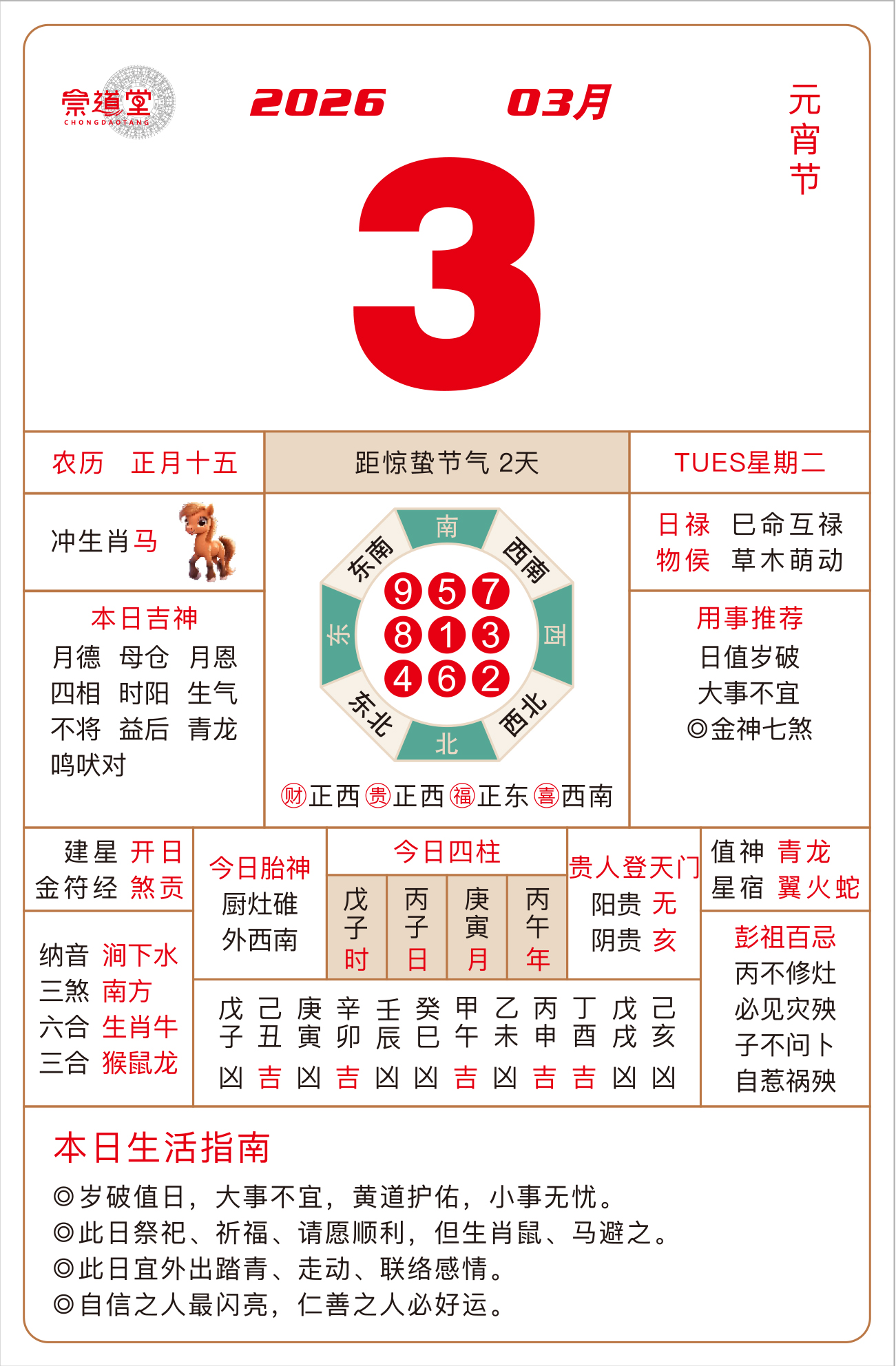 2026年3月10日 农历正月廿二 癸未日 冲牛