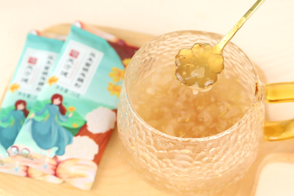 送入口中都是桂花的香气与藕粉的清甜;细细品尝,感受银耳的软糯胶质与藕粉的细腻幼滑;温润入喉,口腔生津;嘴里桂花香味绵长,经久不散。