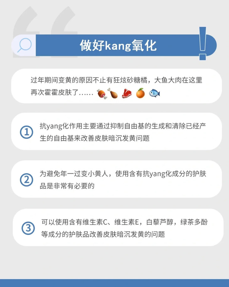 油腻的大鱼大肉、狂炫砂糖橘不仅体重飙升,皮肤也会越来越出现黄气,想要解放双嘴的同时拥有白嫩好皮肤,一定要查收这份春节护肤去黄攻略🔍