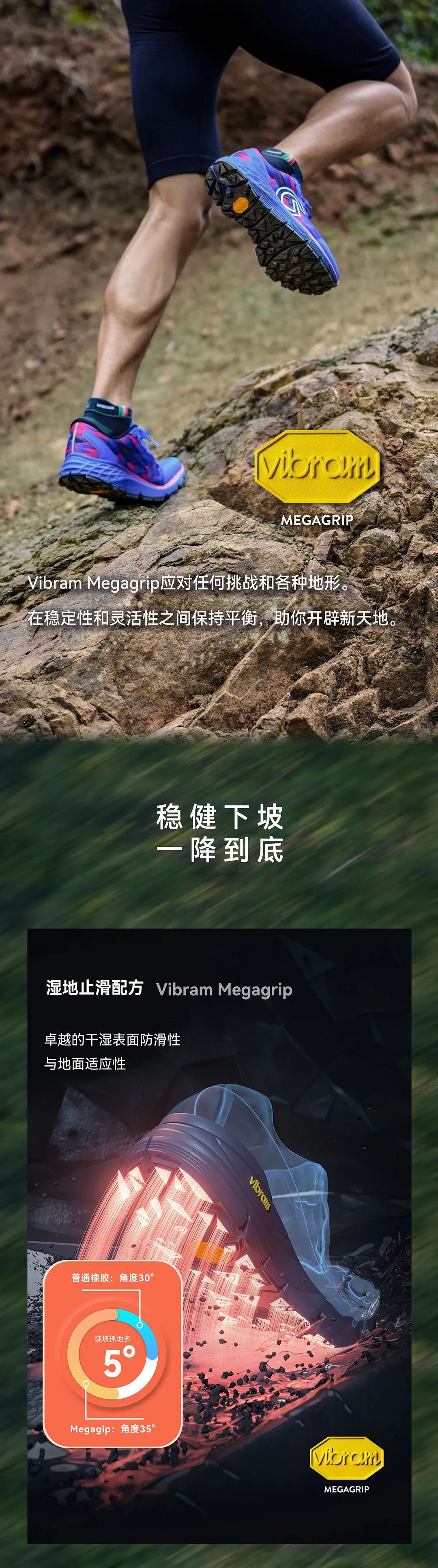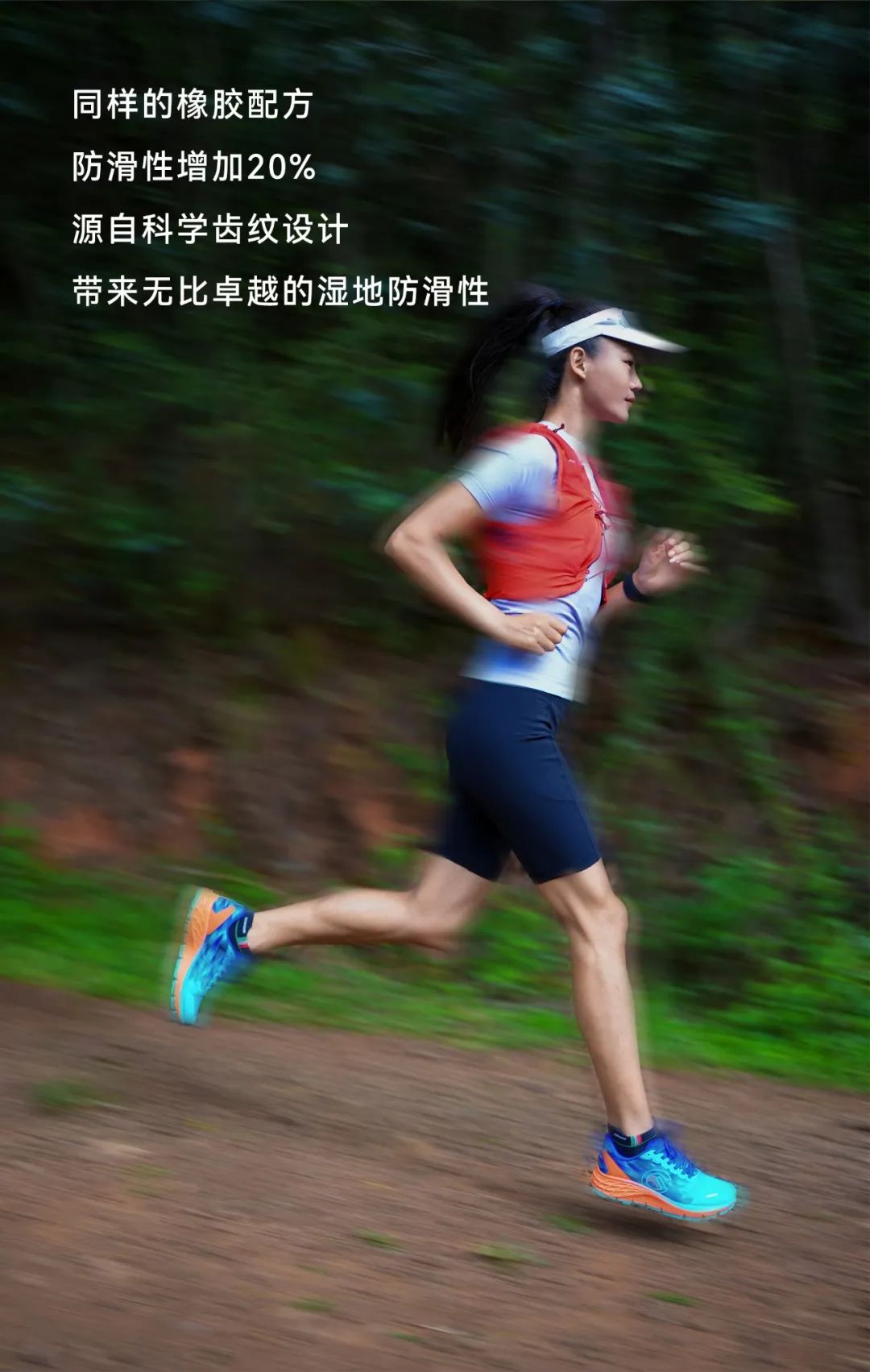 对于越野跑这样的高强度户外运动,防滑耐磨的大底必不可少。