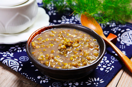 做法:粳米250克,绿豆100克,加水适量,共煮成粥。绿豆粥具有清暑、健脾、解毒的作用。