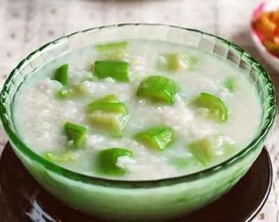 做法:丝瓜100克,粳米250克,猪油10克,精盐3克,加水适量,共煮成粥。丝瓜粥具有清热、化痰、凉血解毒的作用。