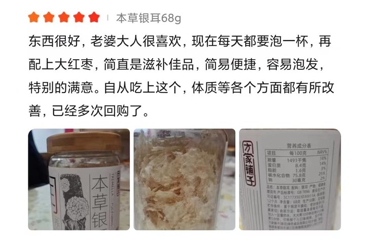 购买过方家本草银耳的姐妹们都给出了大大的赞!不少人还选择了回购,可以说是非常受欢迎了~