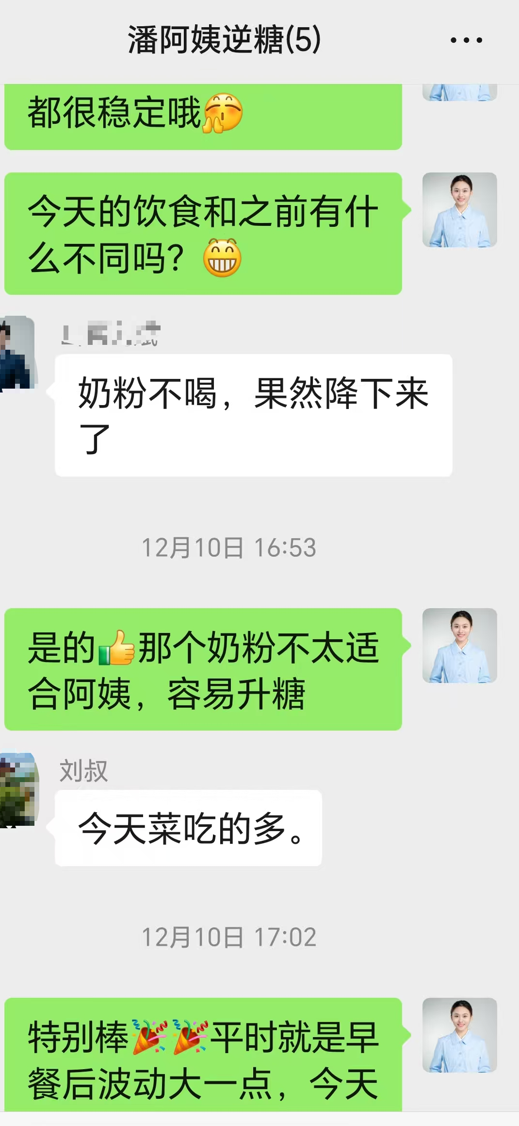 联系我的,是潘阿姨的儿子刘哥,他自己也曾是糖耐量受损的“准糖友”,通过健康管理成功逆转后,对母亲的健康情况格外上心。