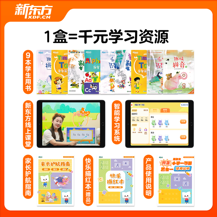 📦新东方正版出版物教材9本、家长指南1本、使用说明1本、首发赠品快乐