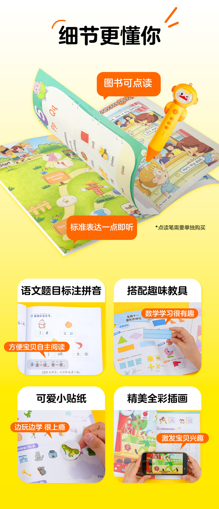 🌈包括语文拼音、语文识字、数学思维、英文字母、英文会话5大主题