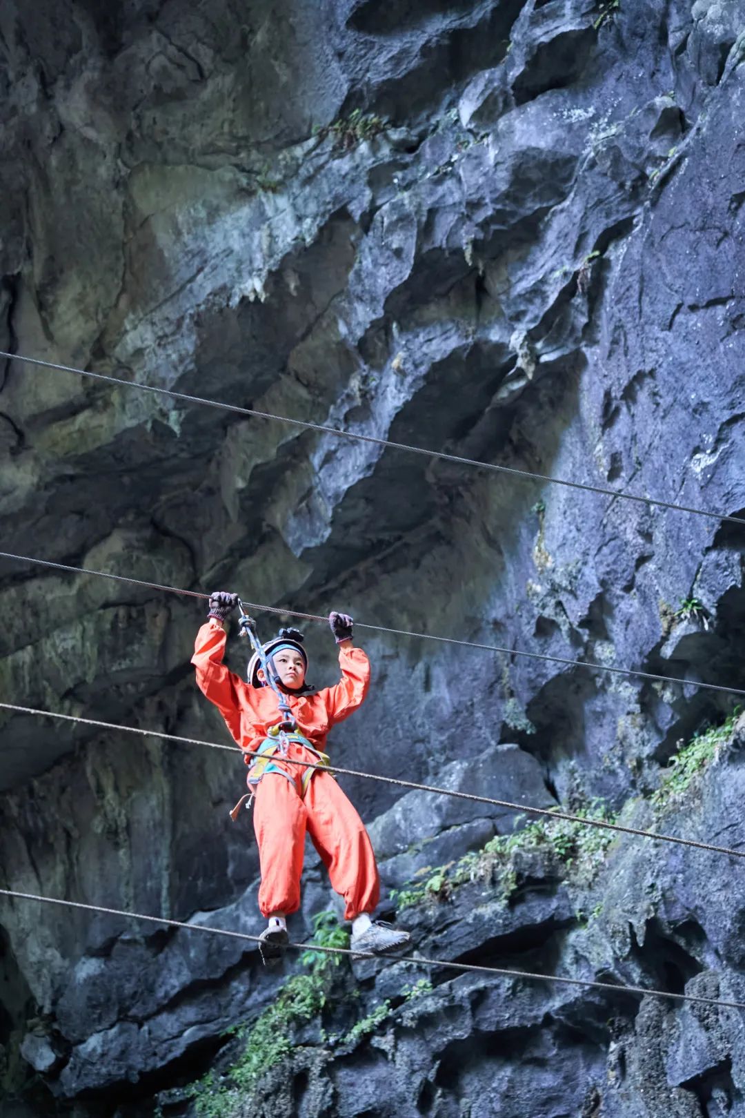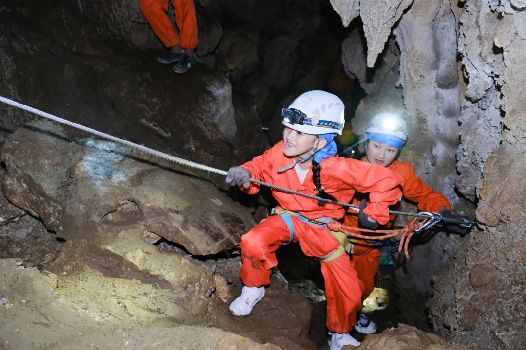在当地专业探洞教练团队带领下,我们会戴上头灯进入溶洞深处,通过扁带、速降穿越溶洞,观察洞内千姿百态晶莹剔透的天然石笋、石柱、石幔等,跟着老师学习喀斯特地貌的形成原理、地质构造、生物多样性等知识,增长对地球科学的认识和理解,收获国际洞穴联合会证书。