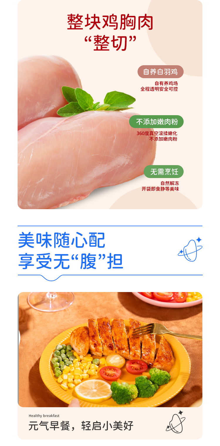 咱们这个鸡胸肉选用的是整块的鸡大胸🍗肉质特别紧实,在保证了地址高蛋白的前提下,还做到了鲜嫩多汁