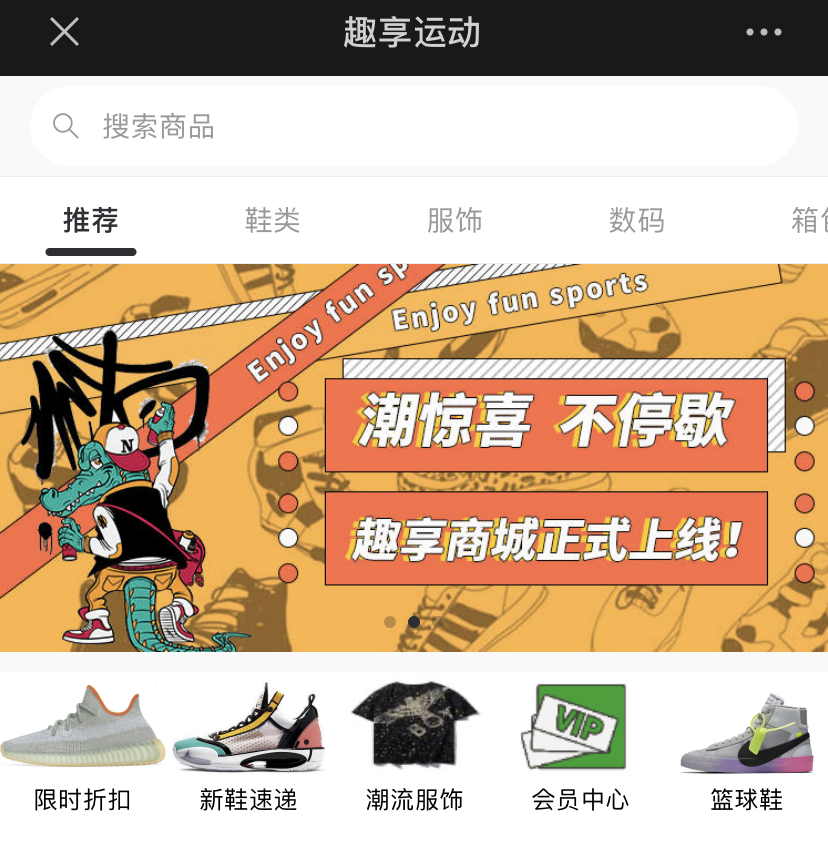 趣享运动作为一家集品牌潮鞋、潮流服饰和前线数码等高端商品于一身的高品质商城,不断扩充、更新迭代,打造新一代的潮流网购社区,严苛要求每一处细节,为全国各地消费者提供潮流网购体验。