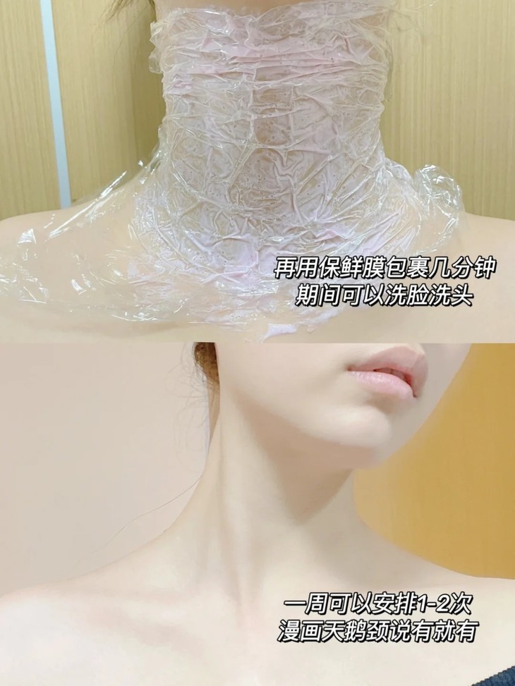 3⃣️用保鲜膜覆盖在脖子上 5-8分钟
