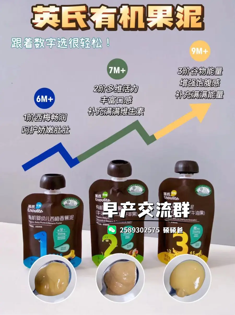 针对宝宝在各个阶段的生理营养需求,英氏研发设计出了5阶的辅食食品,很适合新手爸妈以及没时间给孩子做辅食的家庭。