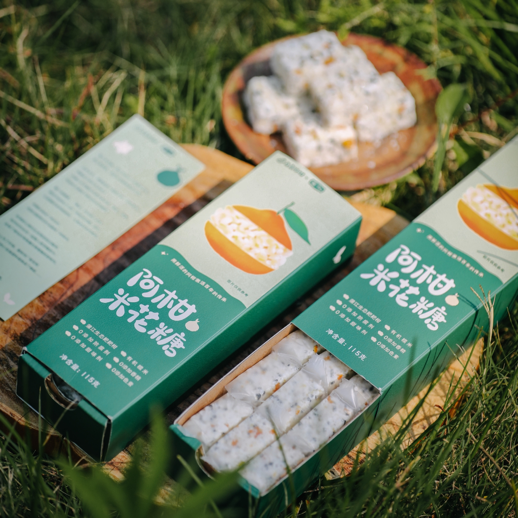 阿柑米花糖,合作方是蒲江本地的非遗传承世家。